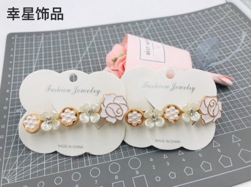 painting oil rose shape steel clip two flower diamonds hairpin pearl clip half ponytail spring clip 中文版