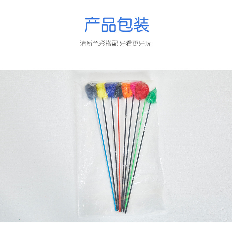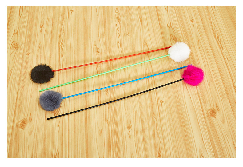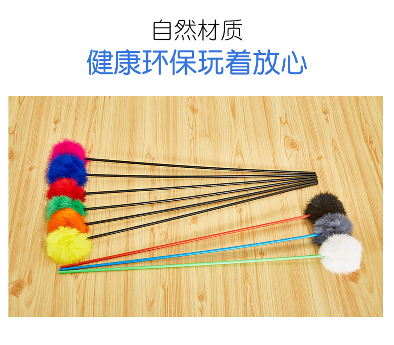 Fun Cat Teaser Rabbit Fur Cat Teaser Toy Long Brush Holder Rabbit Skin Real Fur Ball Cat Teaser Human Cat Interaction Cat Supplies