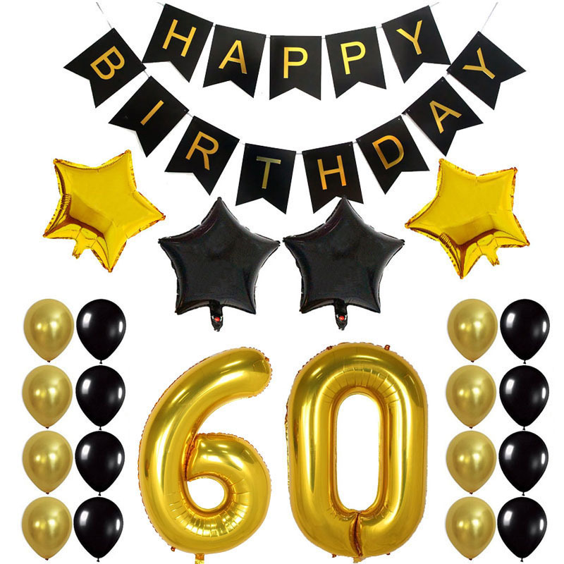 Hot gold black birthday letter flag set; 193.5 grams set
