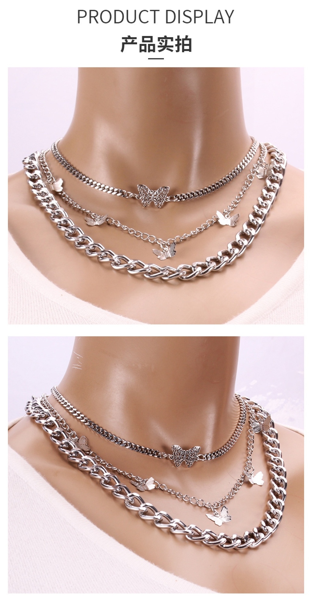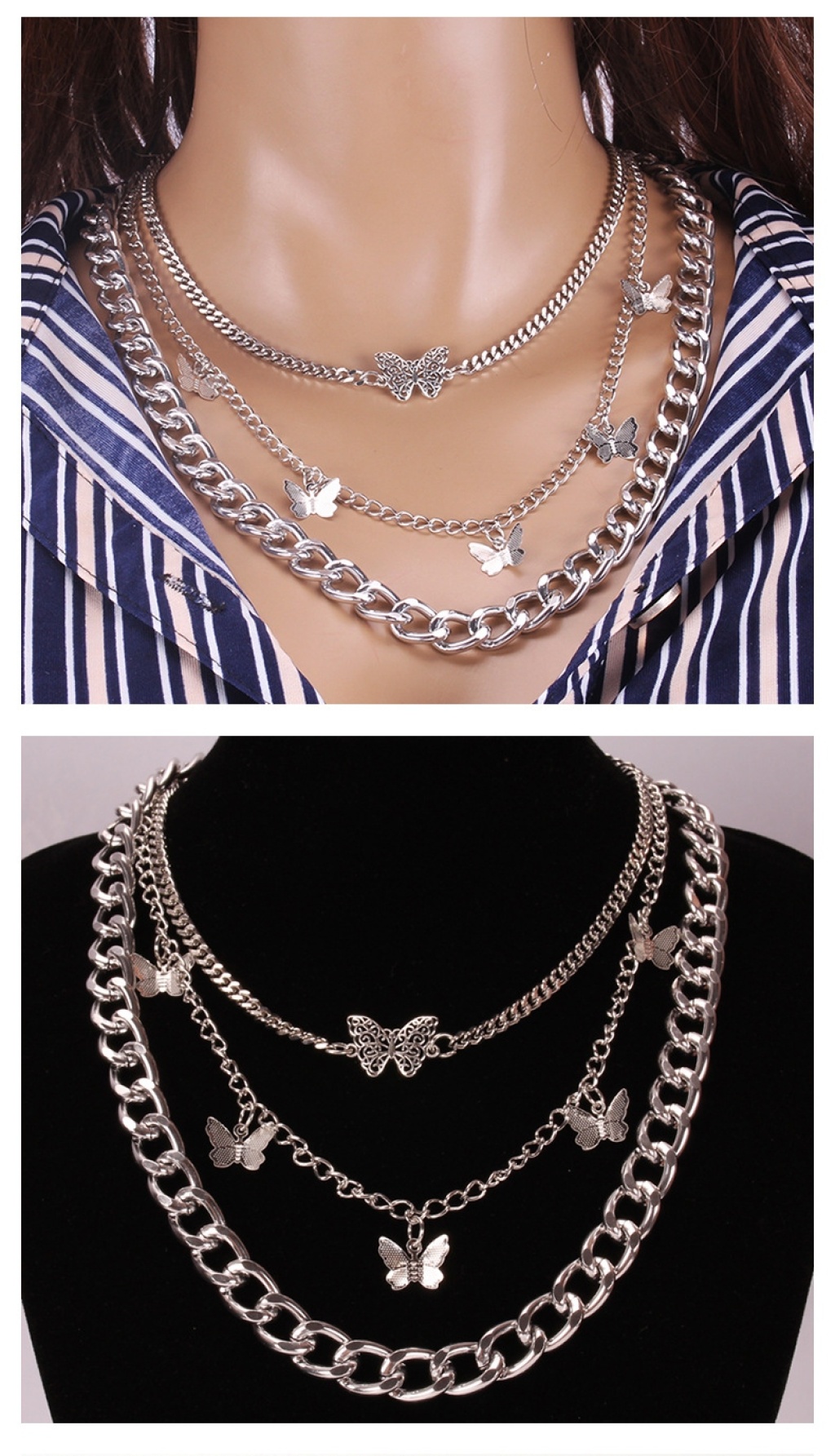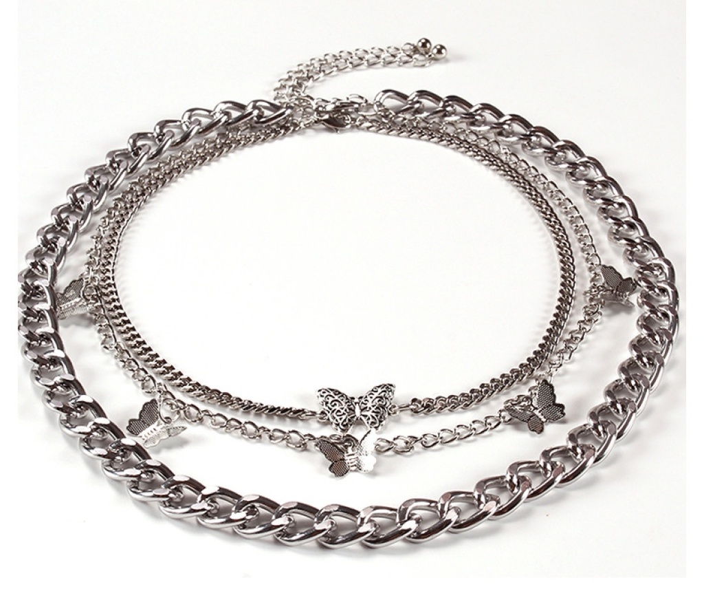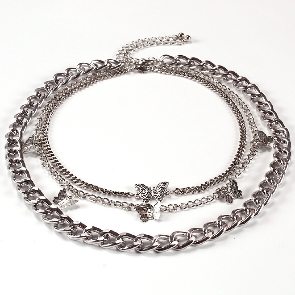 europe and america cross border new retro thick straps double-layer butterfly pendant female geometric creative elements fashion trend necklace 中文版