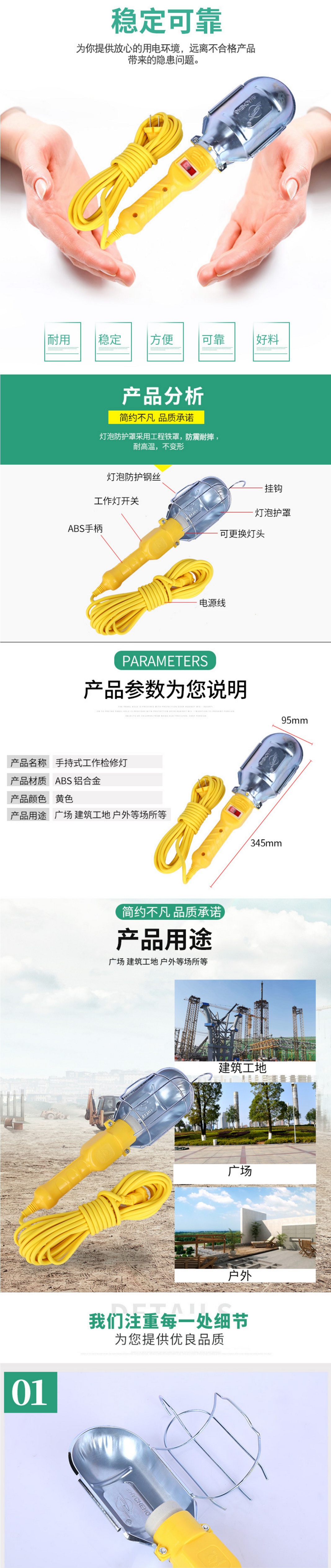 in stock supply iron cover work inspection lamp with line handle work portable lighters auto repair emergency light 中文版
