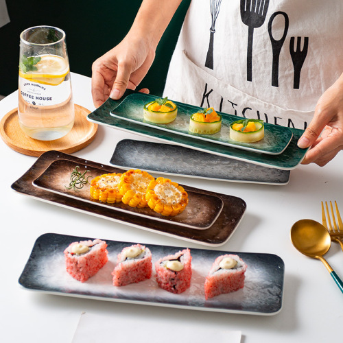 household gradient ceramic strip sushi plate nordic western food dish rectangular dim sum plate plate foreign trade 中文版