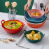 household colored glaze binaural hollow ceramic salad bowl macaron baking bowl dormitory instant noodle bowl plate foreign trade 中文版