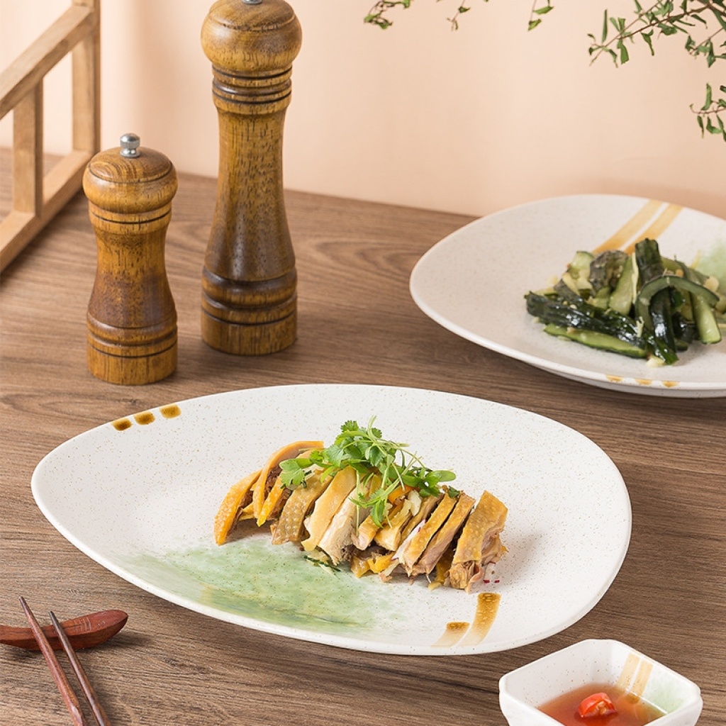 japanese style hand drawn special-shaped plate ceramic creative dinner plate household hotel tableware nordic creative irregular deep plates h