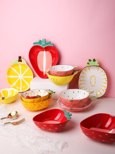 creative girlish heart children's bowl ins internet celebrity tableware household ceramic strawberry bowl dessert fruit salad milkshake bowl