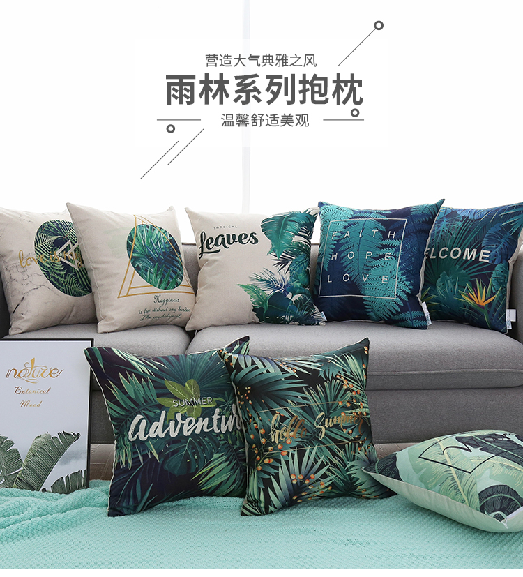 Nordic Instagram Style Pastoral Green Pillow Living Room Sofa Cotton Linen Throw Pillowcase Office Cushion Cover without Core 中文版