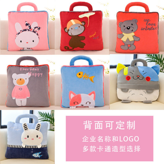 Logo Customization Pillow Blanket Cartoon Cushion Pillow Blanket Sub-Dual-Use Factory Wholesale Car Multifunction Air Conditioner Cushion Cover