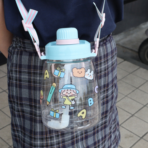 Water Cup Female Cute Summer Large Capacity Kettle Net Red High-Looking Straw Summer Big Belly Portable Children Cup