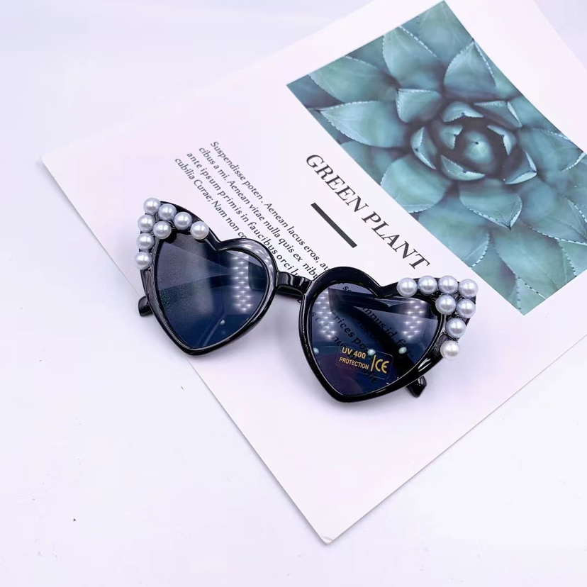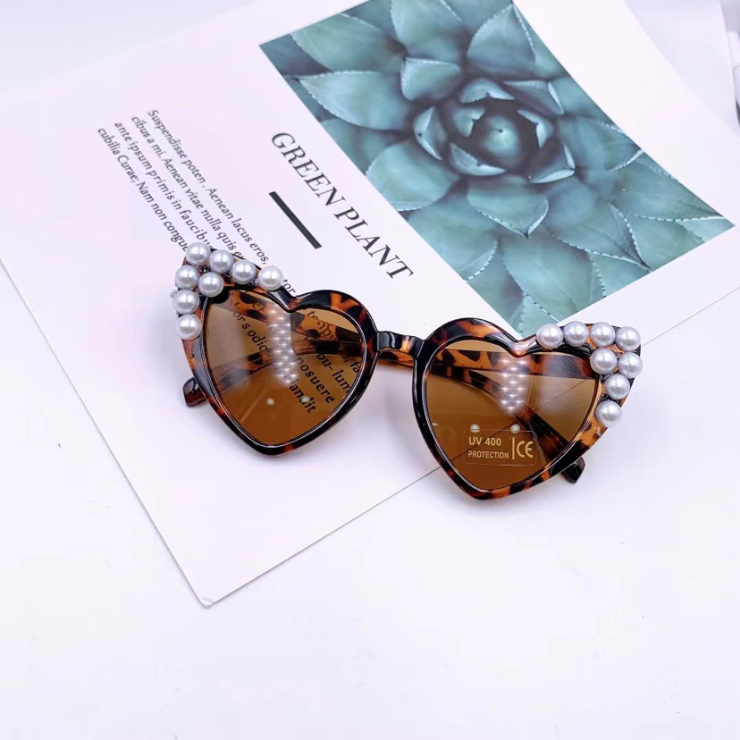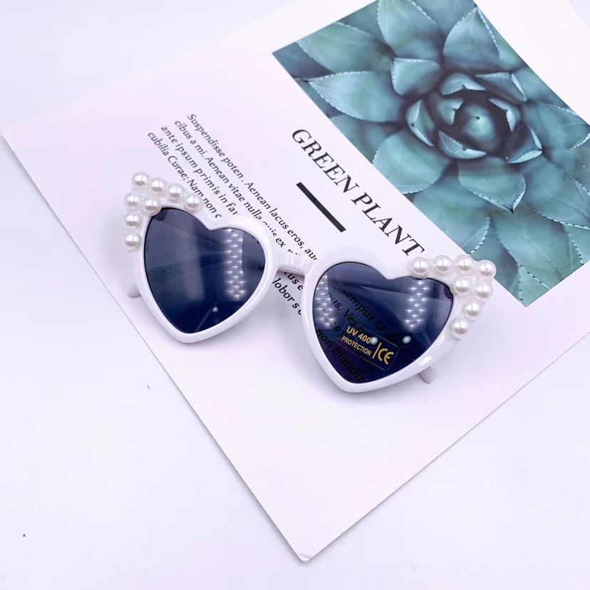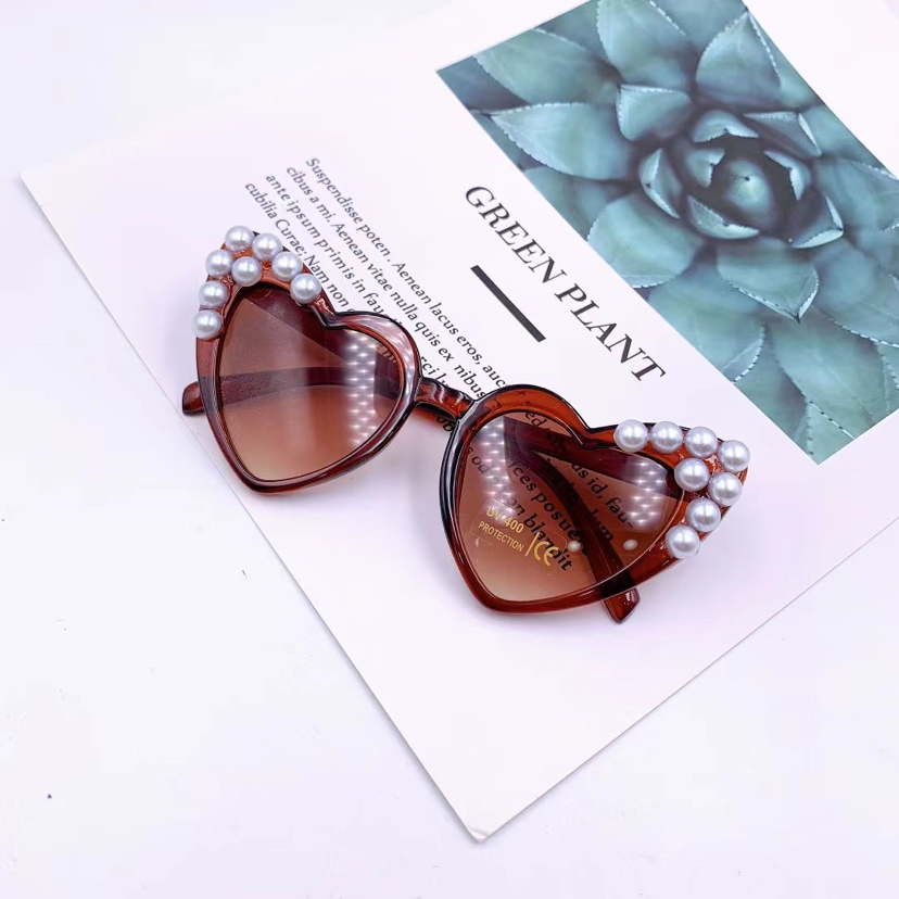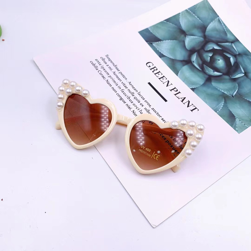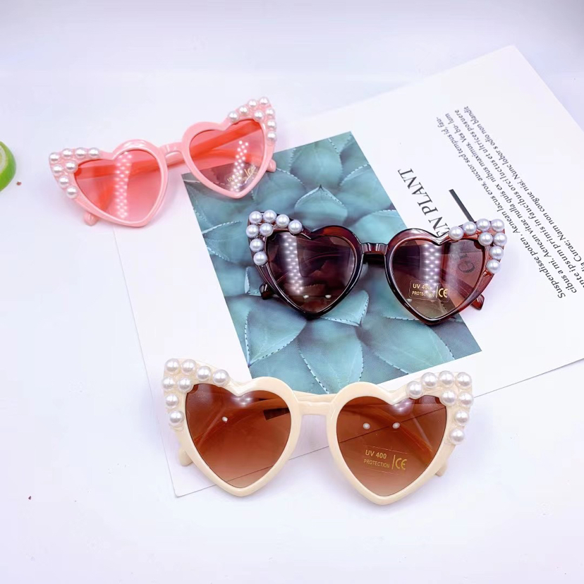 children's peach heart sticky pearl sunglasses