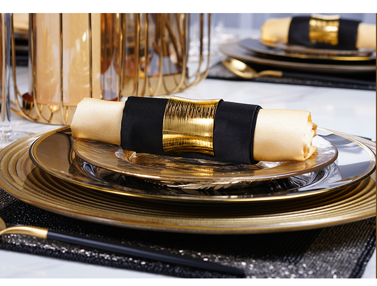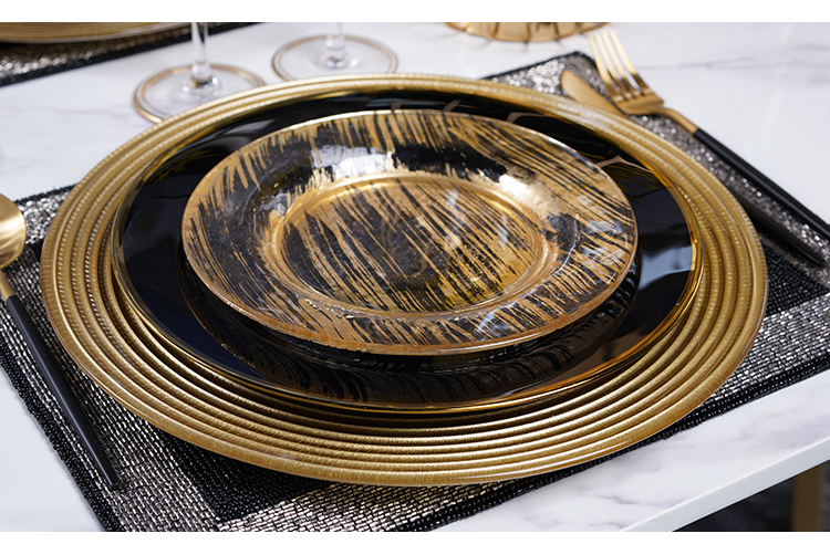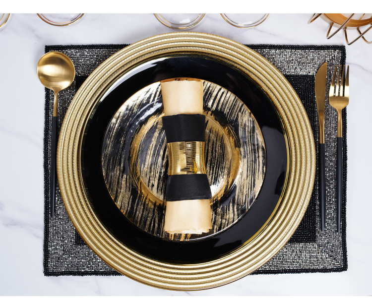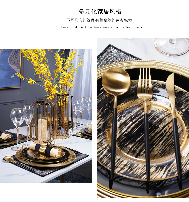 western cuisine plate european-style modern model room tableware set table display set black golden edge 中文版