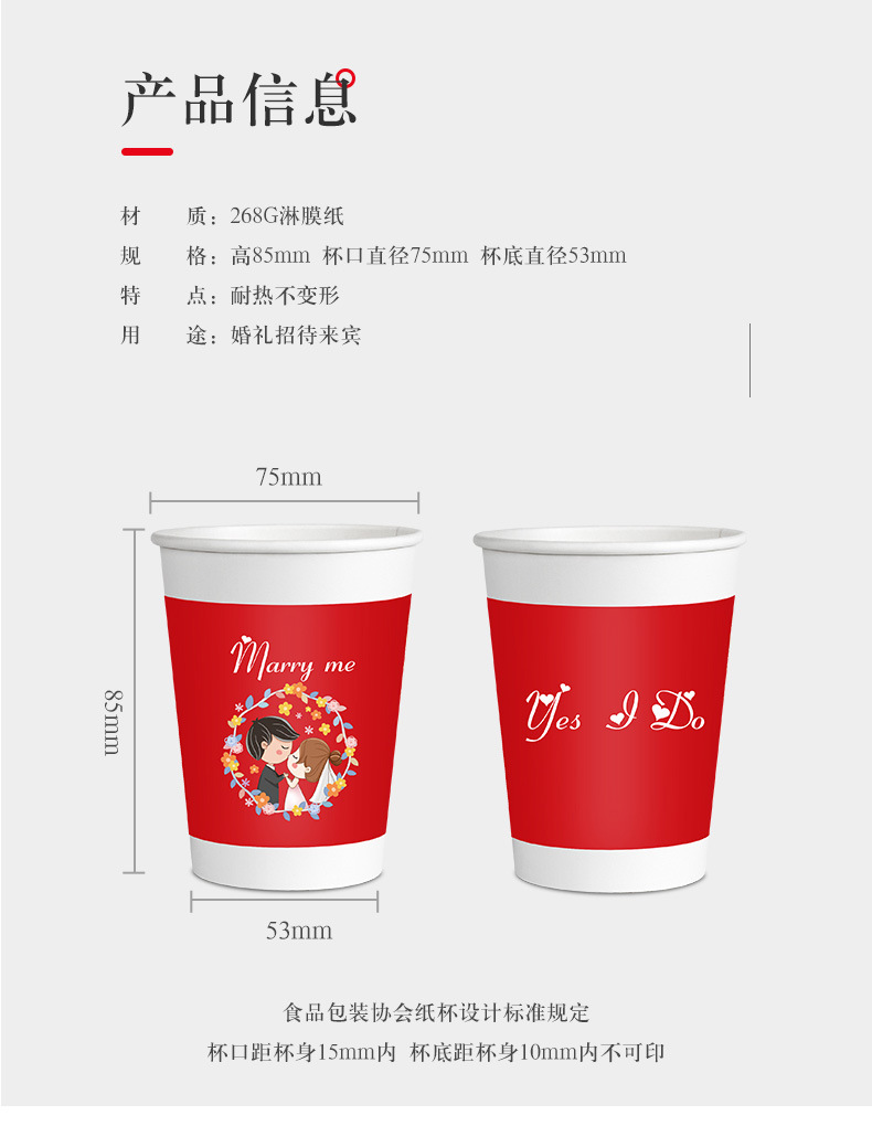 Wedding Paper Cup Household Disposable Wedding Cup Wedding Thickened New Year Paper Cup Wedding Wedding Banquet Tea Ceremony