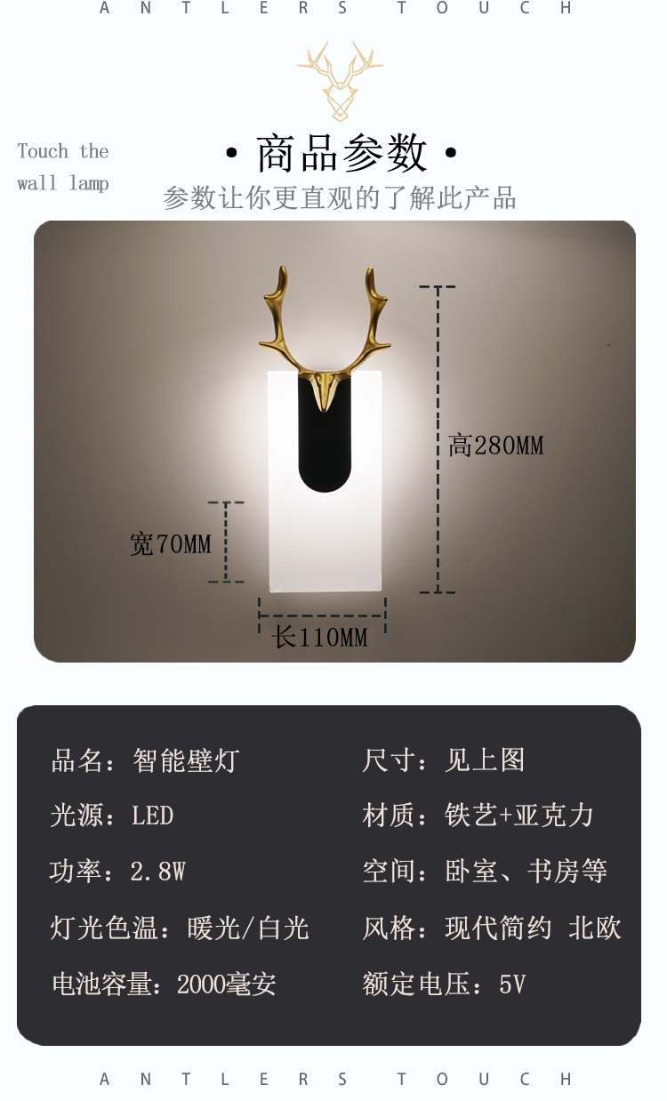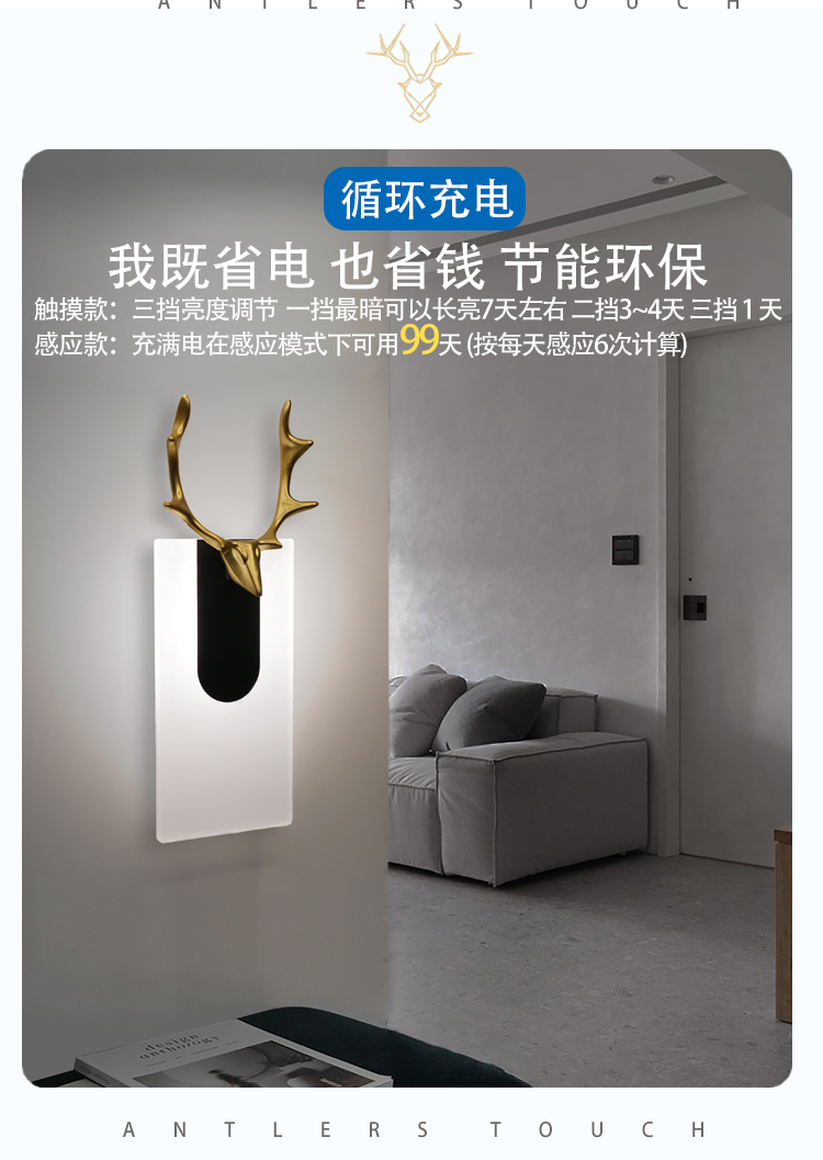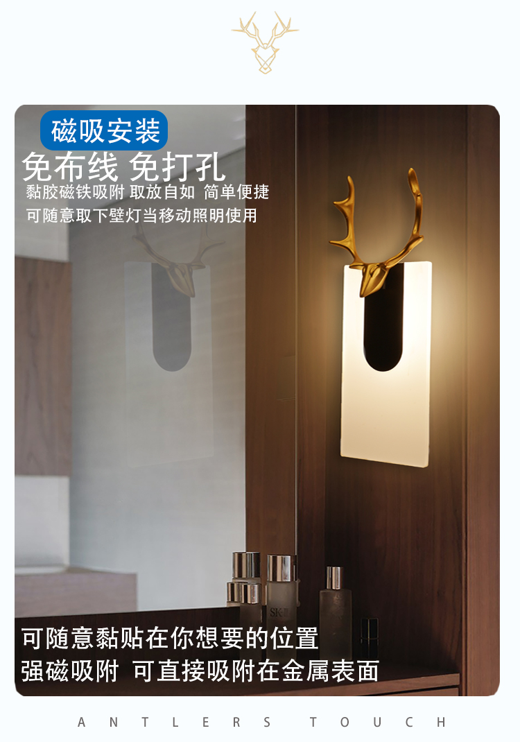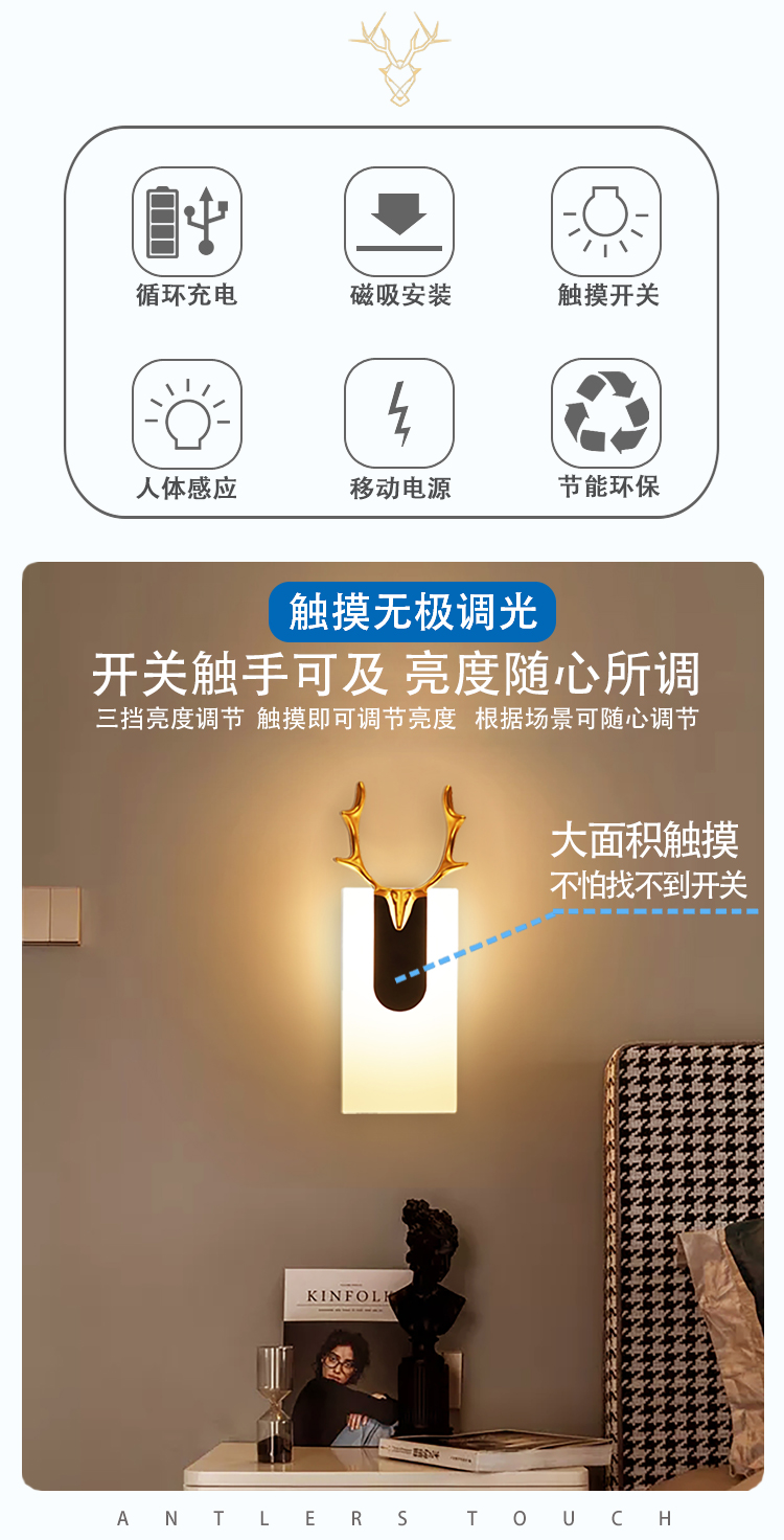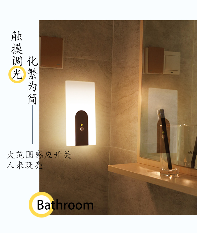 Wall Lamp Bedroom Bedside Lamp Touch Sensor Non-Plug-in Wiring Free Rechargeable Living Room Aisle Corridor Entrance Night Light