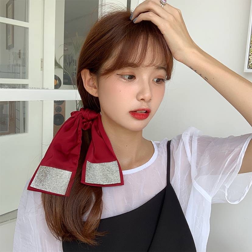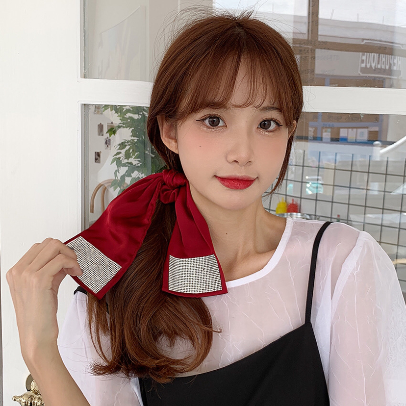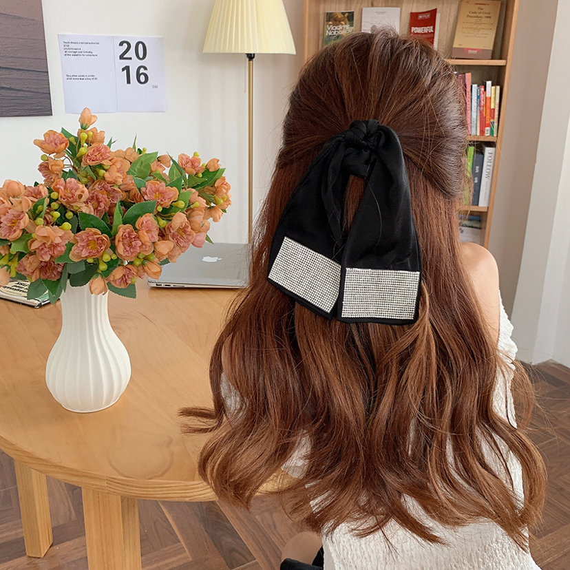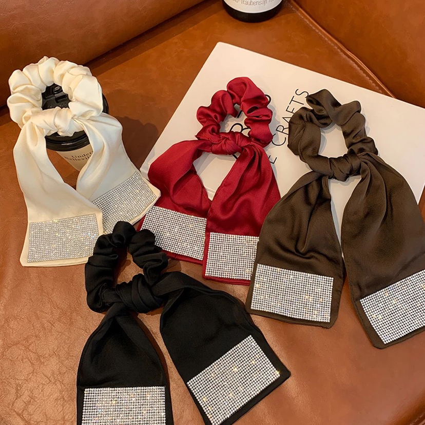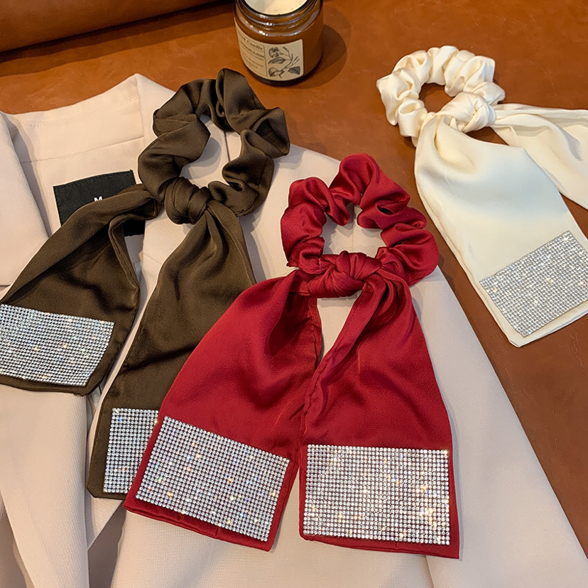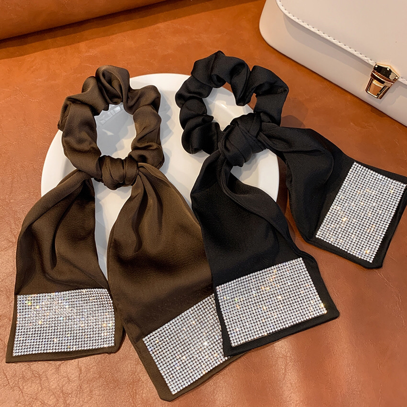 internet celebrity same style flash diamond ribbon hair rope ponytail rubber band high elastic rubber band head rope ball head hair ring female summer 中文版