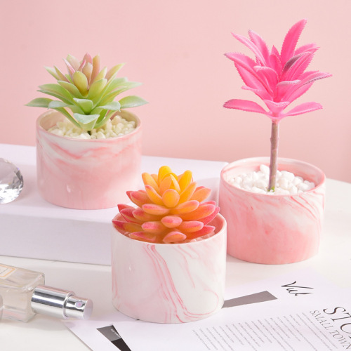 artificial flower fake flower bonsai succulent plants pot marbling ceramic flowerpot 中文版