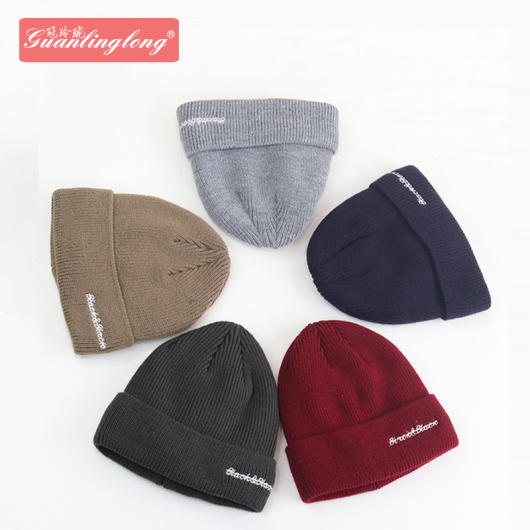 New Autumn and Winter Warm Knitted Hat Letter Embroidery Korean Style Versatile Trendy Sleeve Cap Outing Solid Color Woolen Hat