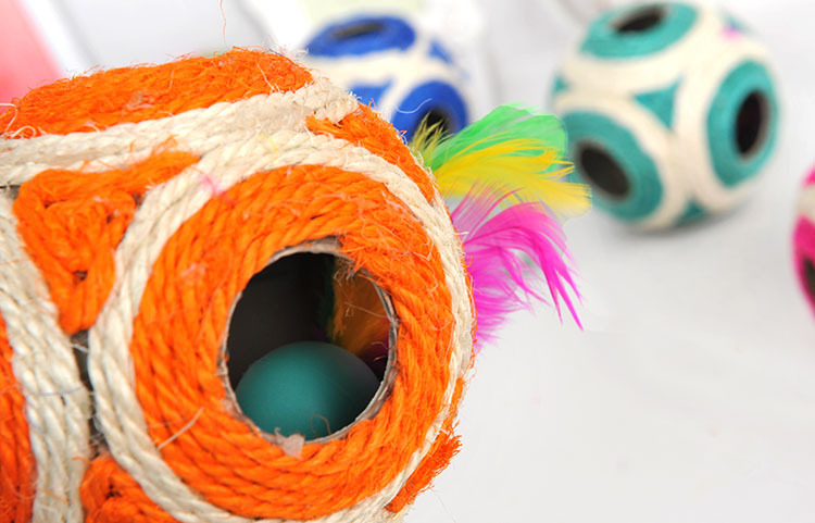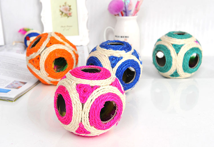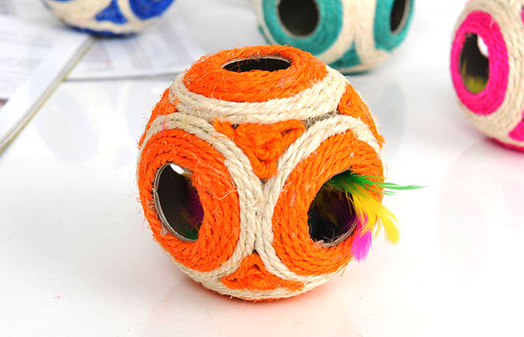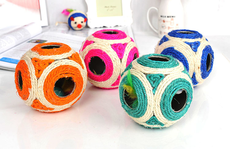 Cats often use claws to grasp furniture or sofas, which shows that they have the need to grind claws, which is the nature of cats; at this time, you should give the cat appropriate substitutes to meet this demand. Using cat scratch board or scratching pole is a good way! This grounder cat scratching toy uses natural sisal as raw material and is naturally non-allergic, cute appearance, six-hole empty ball, containing a small ball with colorful feathers on both sides, colorful, attracting the attention of cats and cats, is a good playmate for cats in the home ~!