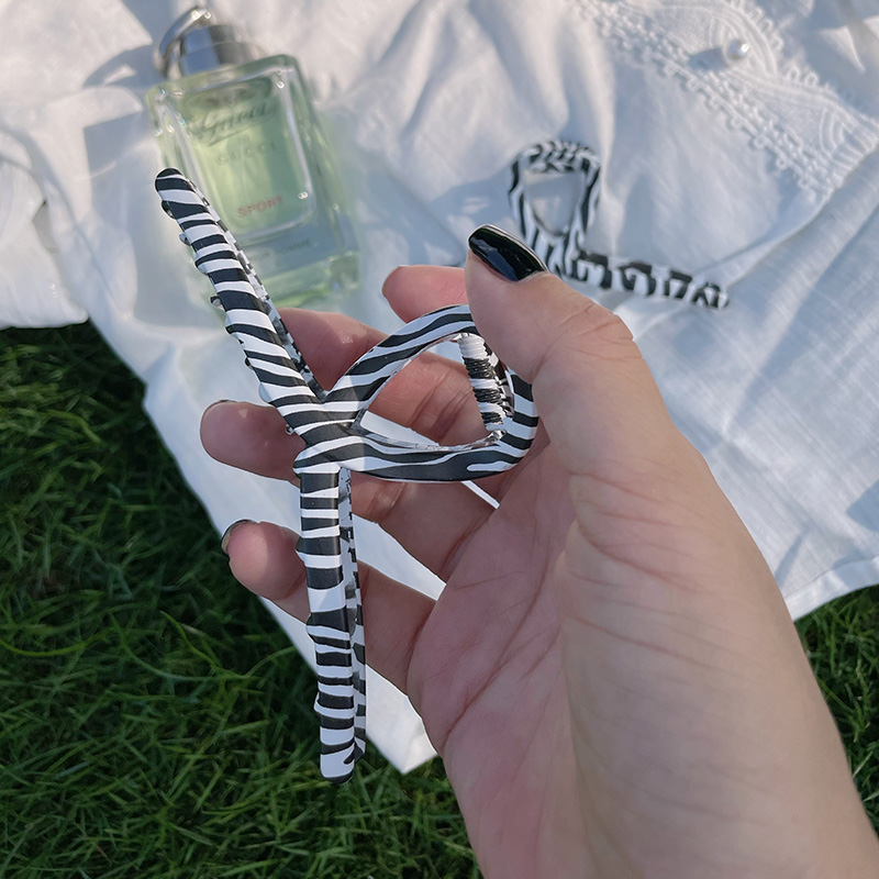 Zebra Print Clasp with Black and White Print, Alloy Fishmouth Clips, Unique and High-end Vintage Hair Clips