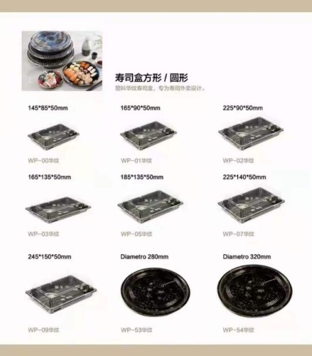 Disposable lunch boxes with three or four compartments in a rectangular shape made of PP plastic for lunch, fast food, takeaway, and sushi with lids