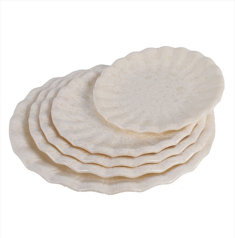 【Safety Performance】: When resin imitates porcelain, the processing temperature is 145 to 165 degrees Celsius, the pressure is 25 to 35 megapascals, and the curing time is 10 to 15 seconds. Under high temperature and high pressure, a chemical pyrolysis reaction occurs during processing and molding, resulting in a product that is insoluble in water. Resin imitation porcelain tableware produced through this process is safe and non-toxic.