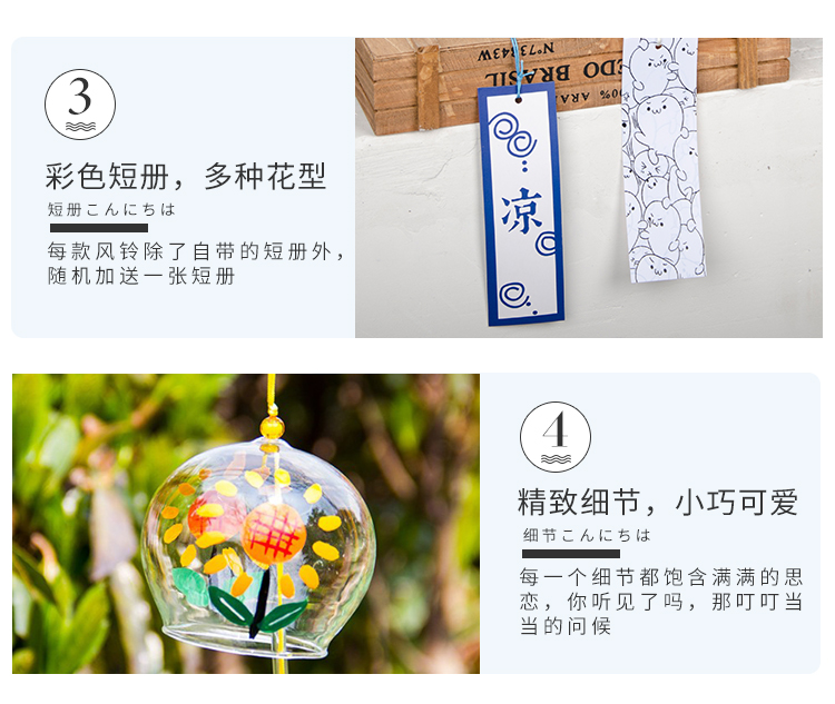 japanese transparent handmade cherry blossom glass wind chimes small fresh ornaments creative home bedroom decorations gifts for men and women 中文版