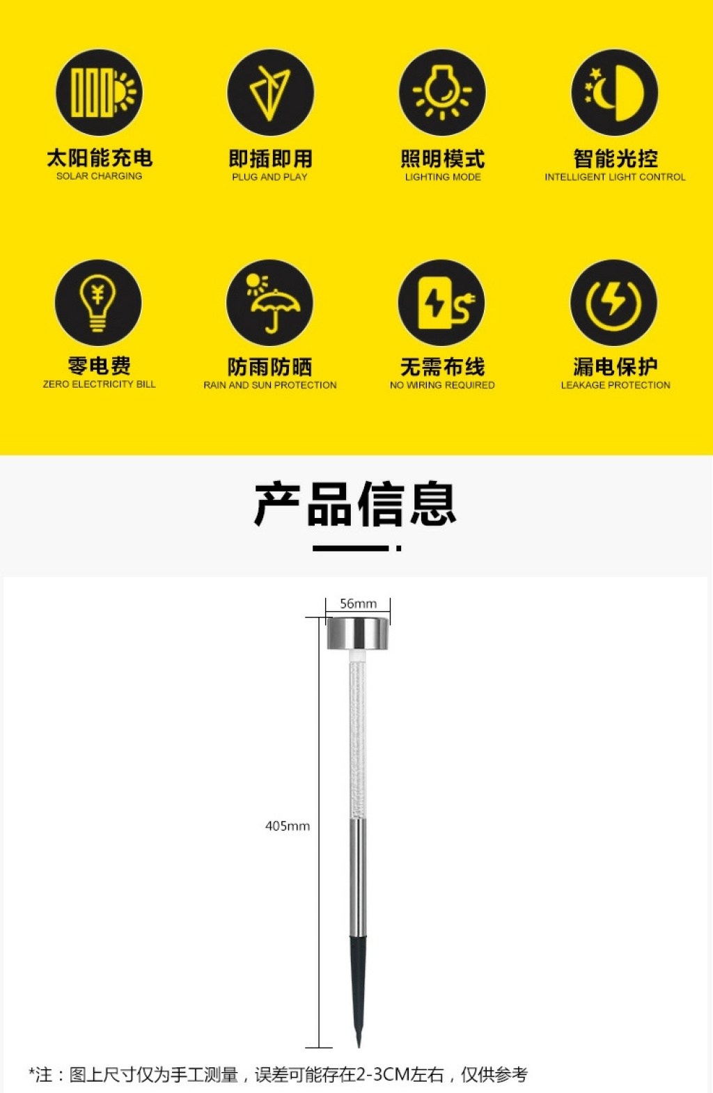 Solar Acrylic Stick Ground Lamp Lawn Lamp Courtyard Decorative Waterproof Park Villa Garden Ground Small Night Lamp 中文版