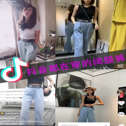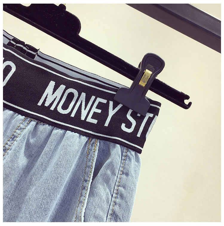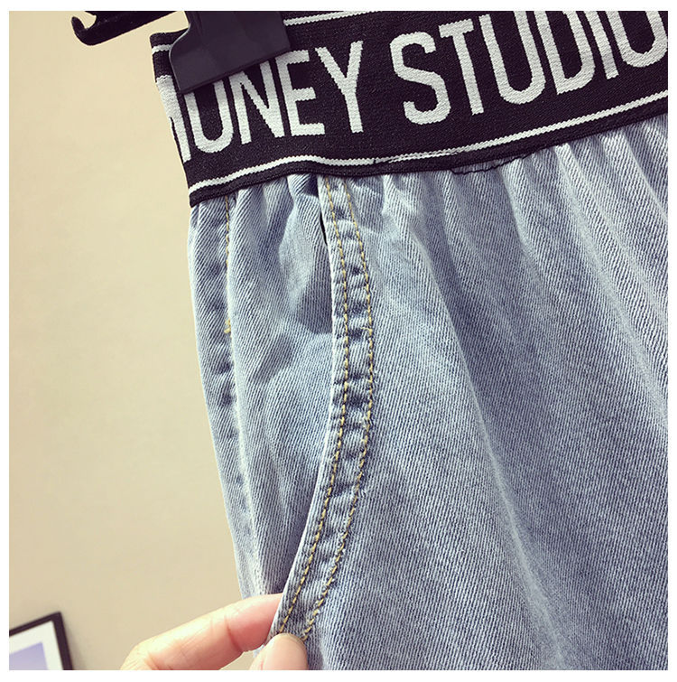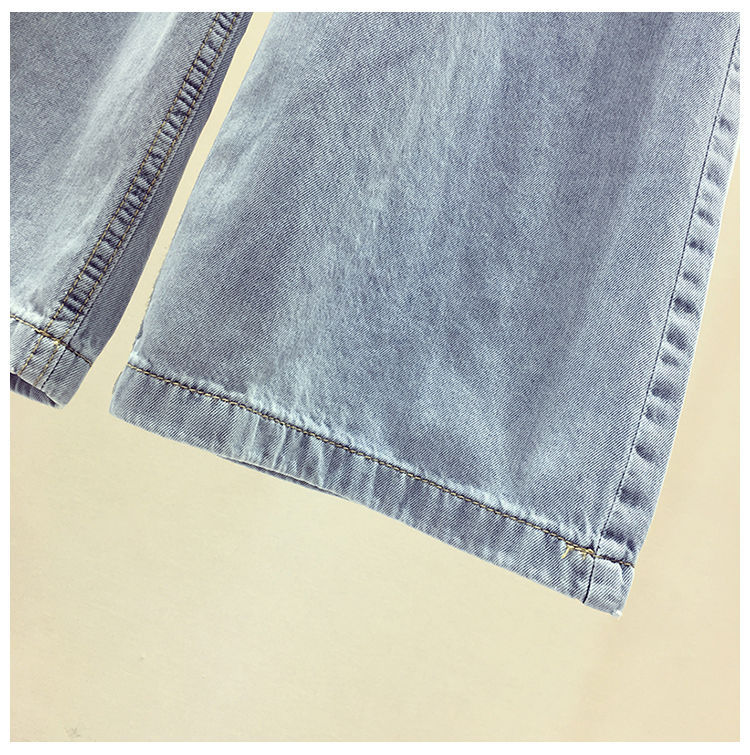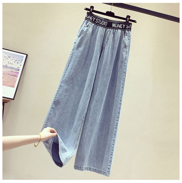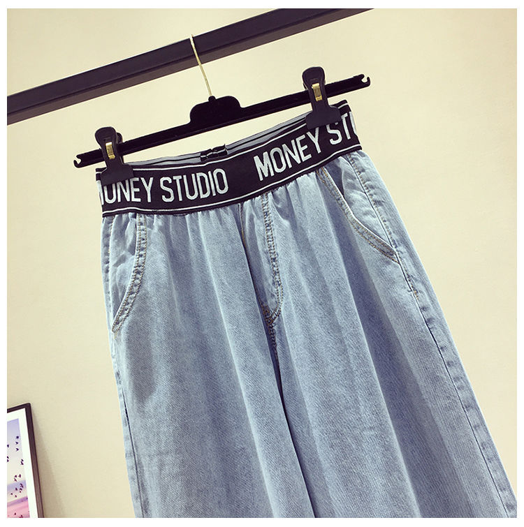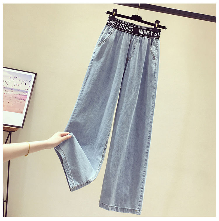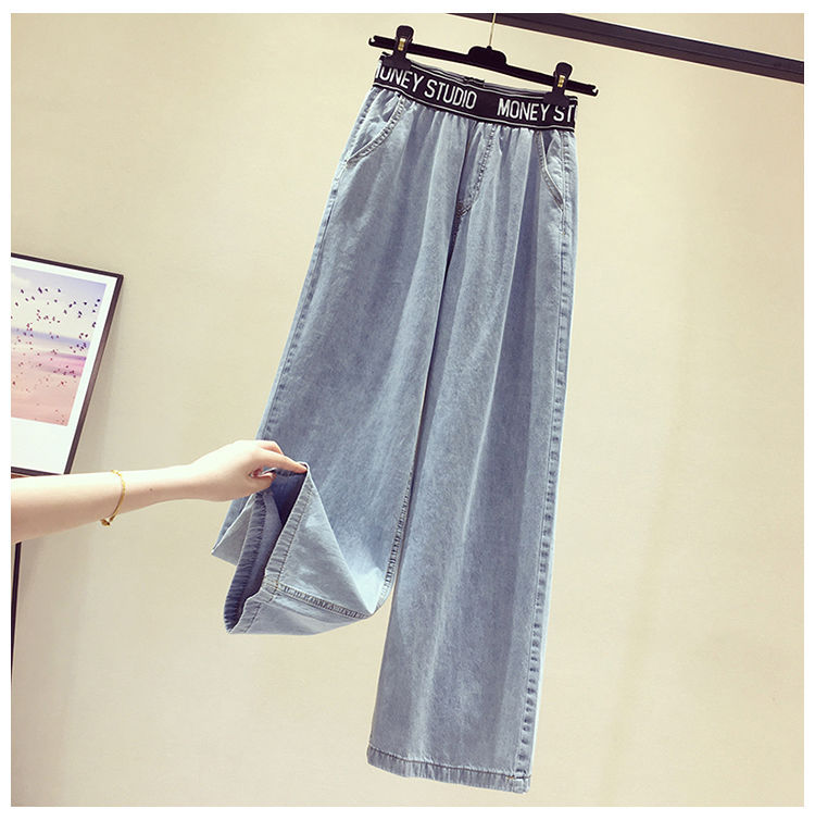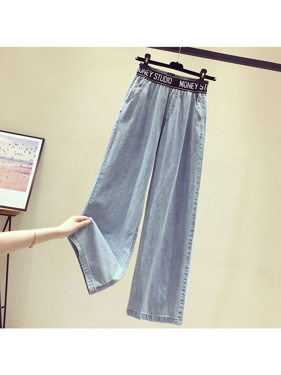 High Waist Korean Style Elastic Waist plus Size Women's Jeans Women's 2021 Summer Loose Slimming and All-Matching Wide Leg Mop Pants