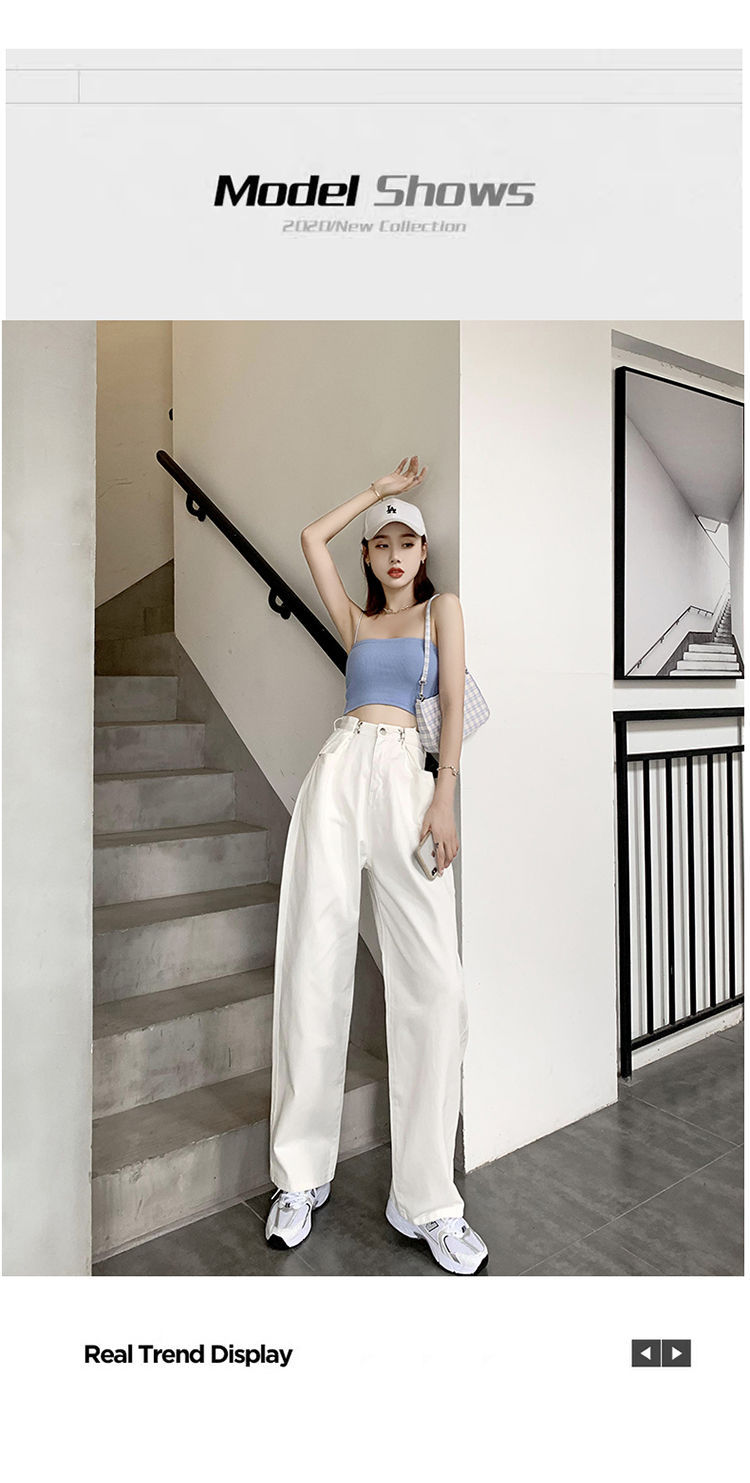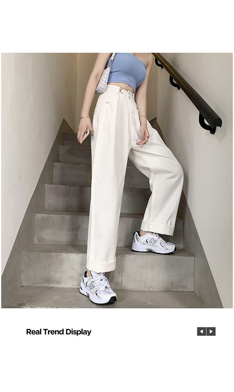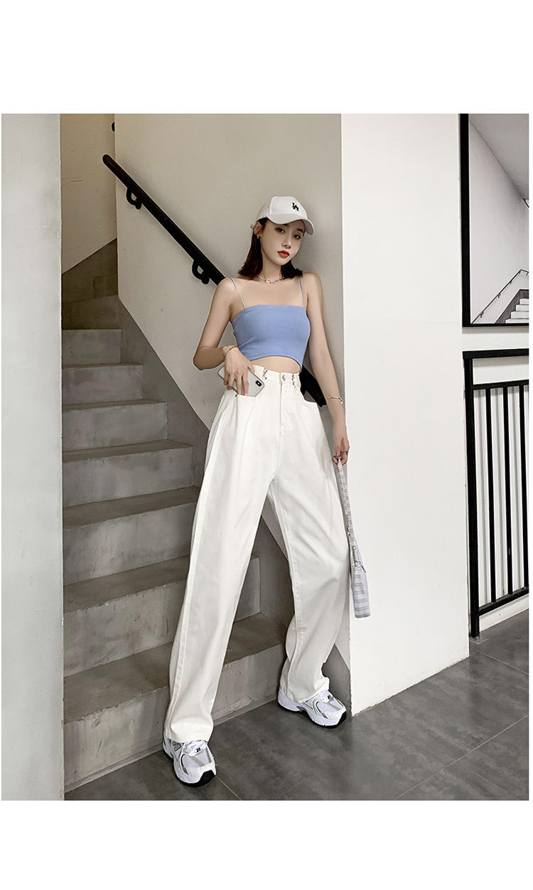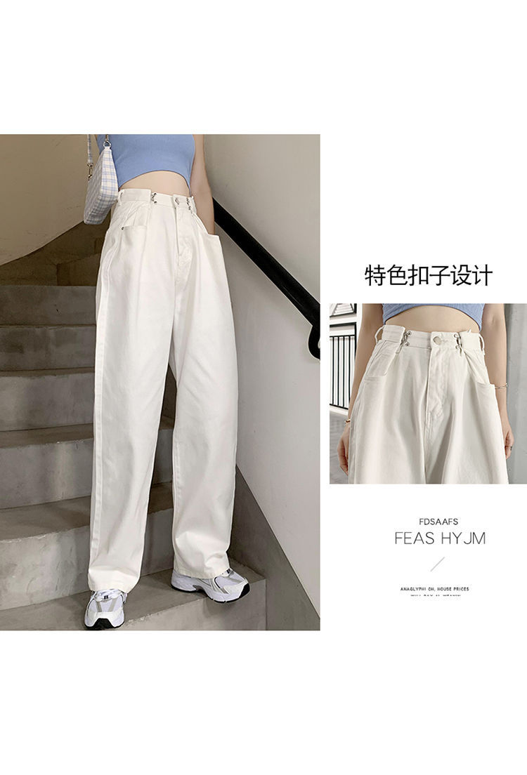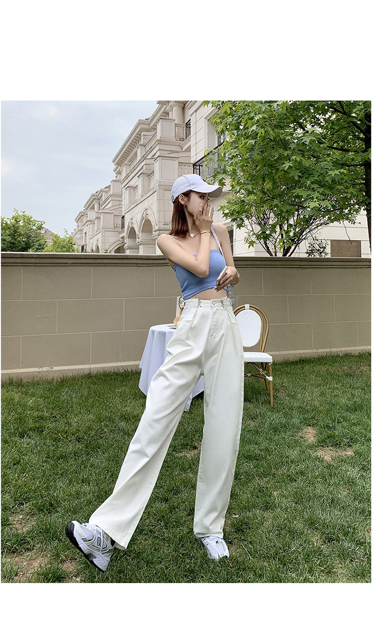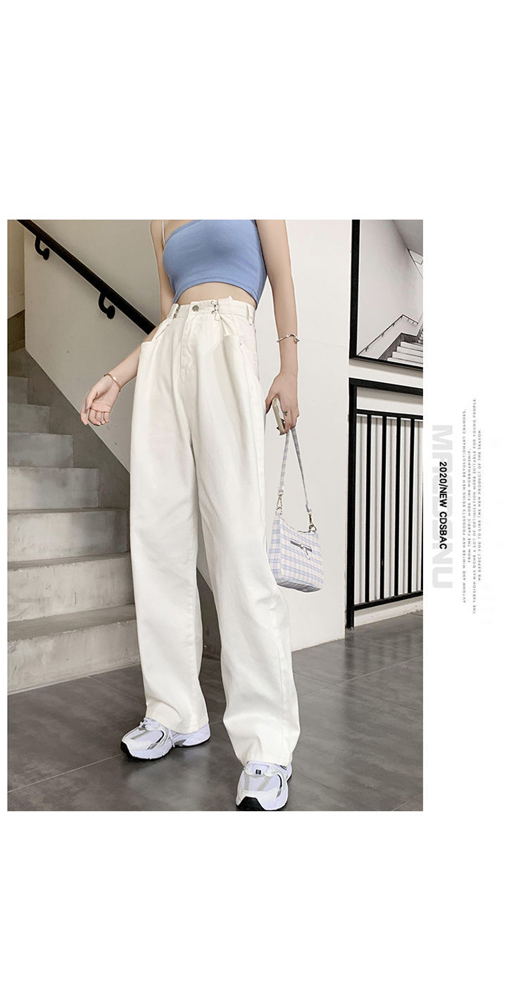 Women's Wide-Leg Jeans 2021 Summer New High Waist White Straight-Cut Loose Slimming Draping Xuan Ya Mop Pants
