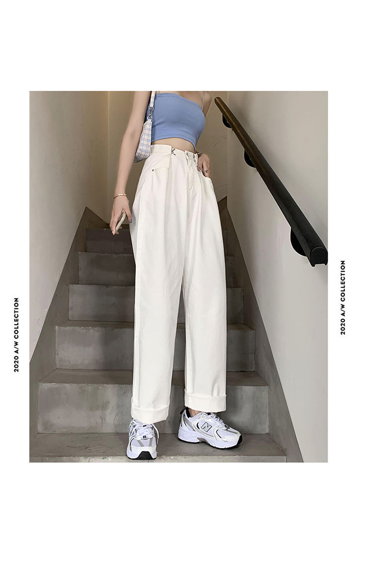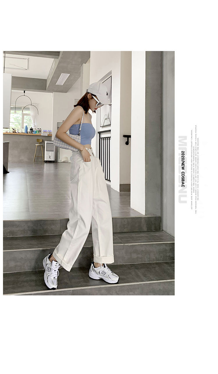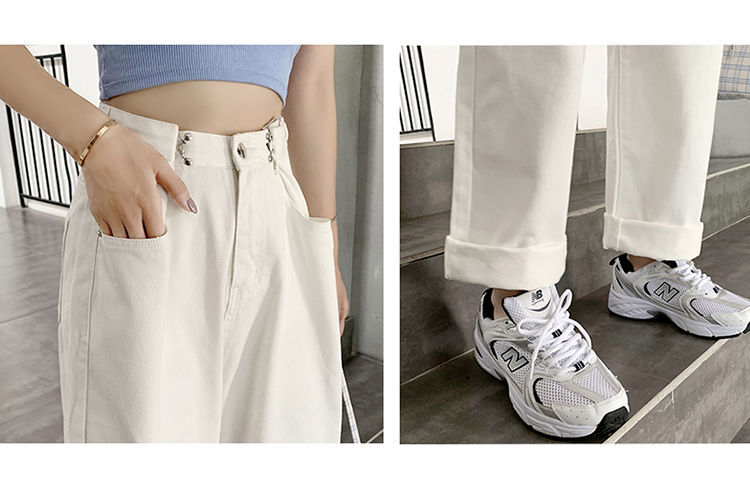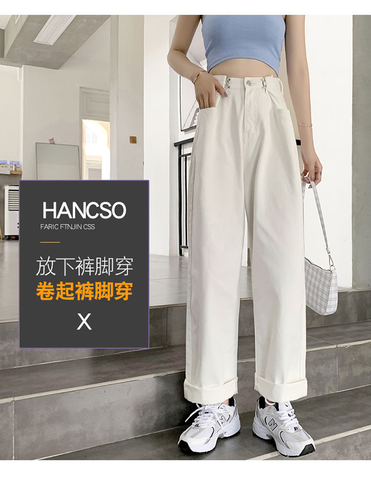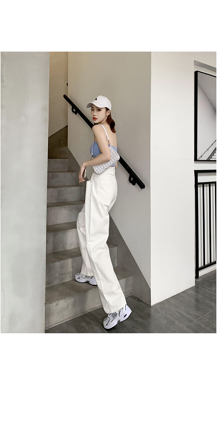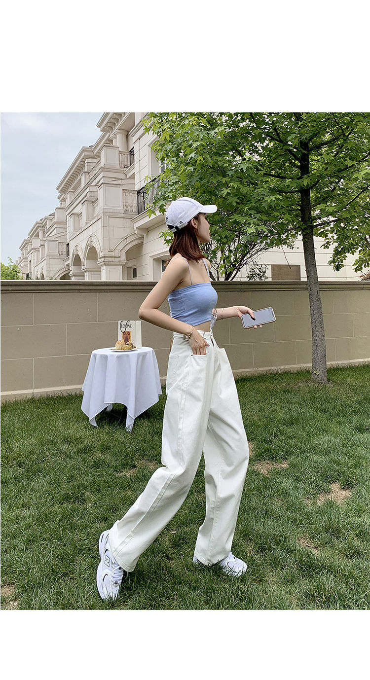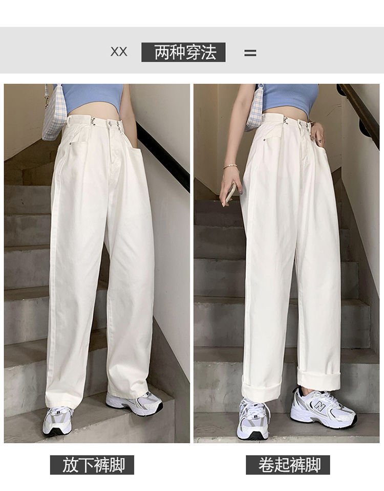 Women's Wide-Leg Jeans 2021 Summer New High Waist White Straight-Cut Loose Slimming Draping Xuan Ya Mop Pants