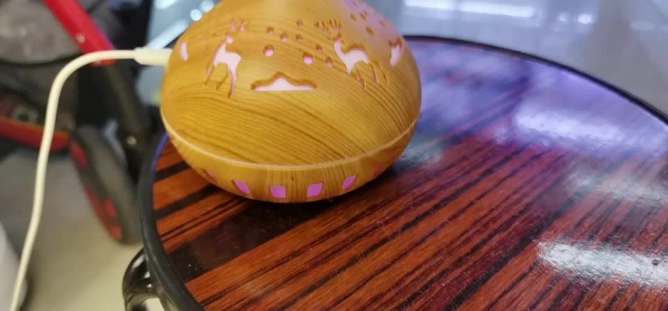 Cross-Border Wood Grain Hollow Humidifier Mute Colorful Purification Creative Bedroom Vase Bird Cage Hydrating Aromatherapy Atomization 中文版