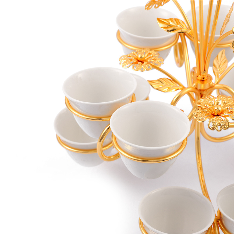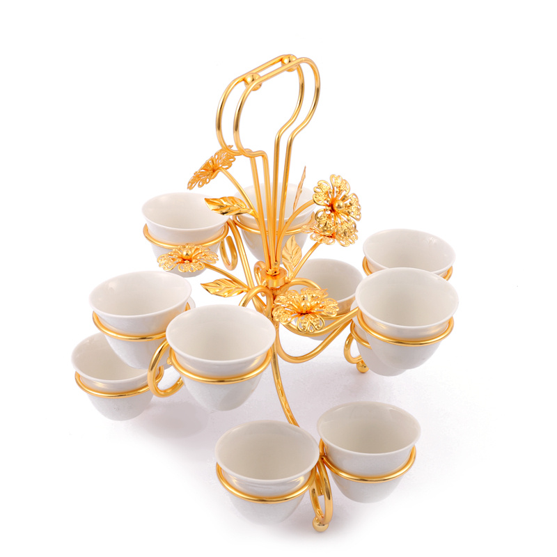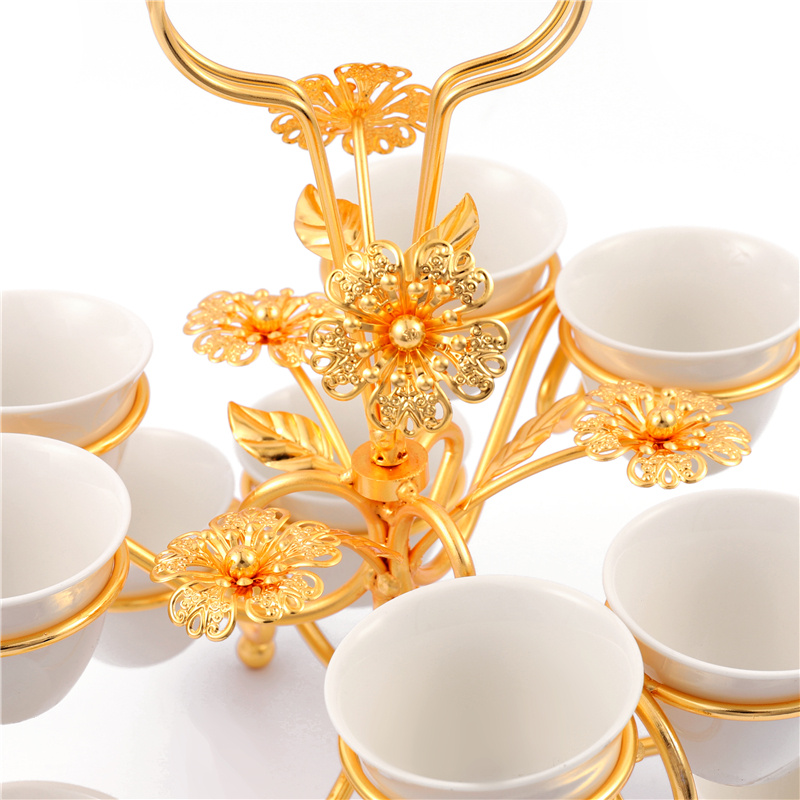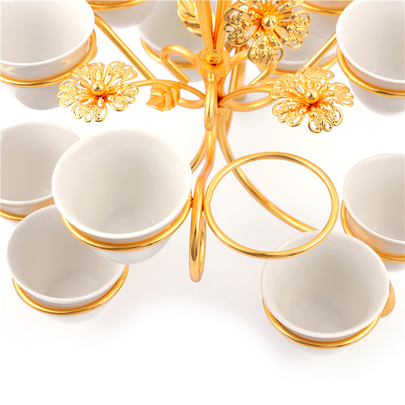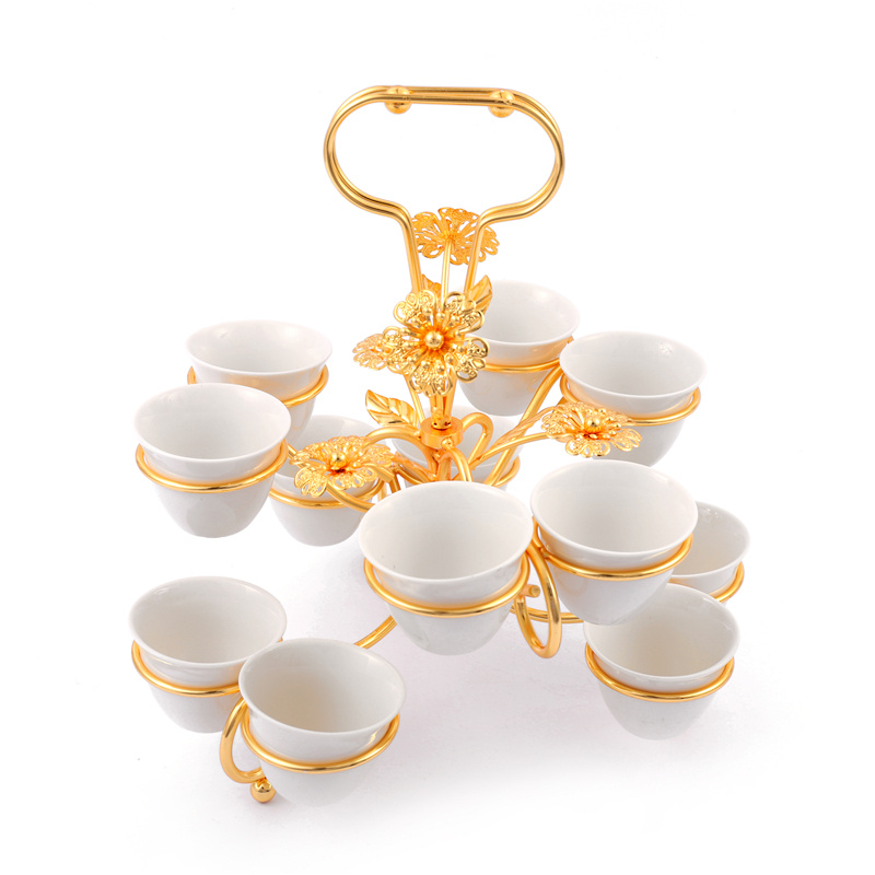 portable gold-plated wine glass holder with 12 ceramic cup 中文版
