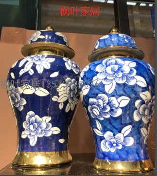 affordable luxury style blue background temple jar ceramic vase villa showroom ceramic chinese vase blue and white porcelain ceramic vase