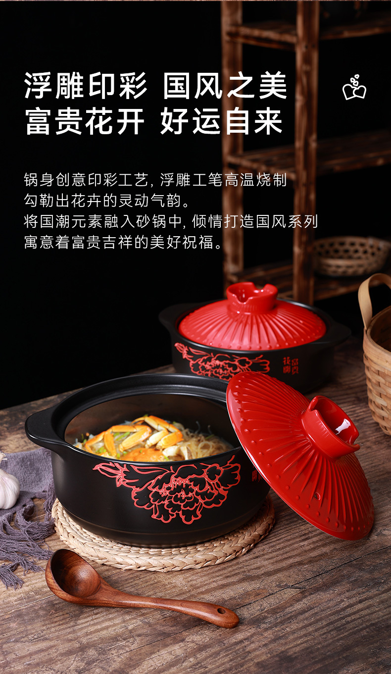 Ceramic Pot King Flower Blooming Rich Japanese High Temperature Resistant Casserole Soup Pot Health Cooker Home Gifts One Piece Dropshipping