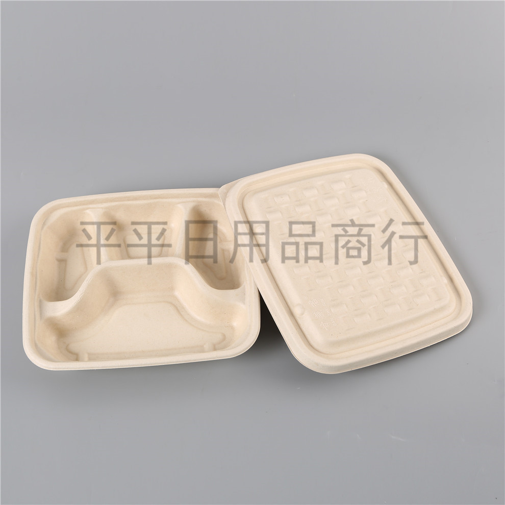 disposable service plate biodegradable sugarcane pulp lunch box four-grid school canteen with lid take out take away multi-grid lunch box