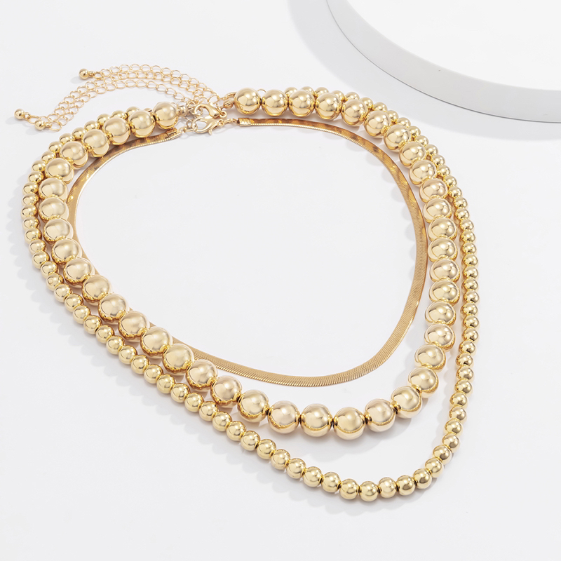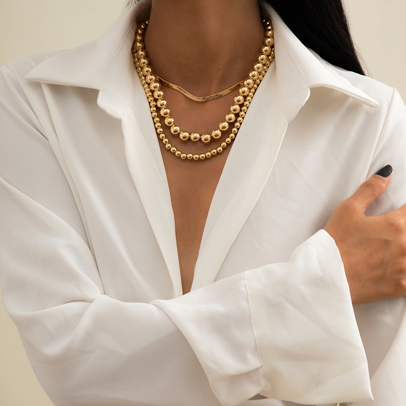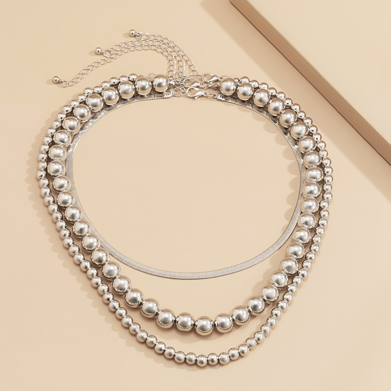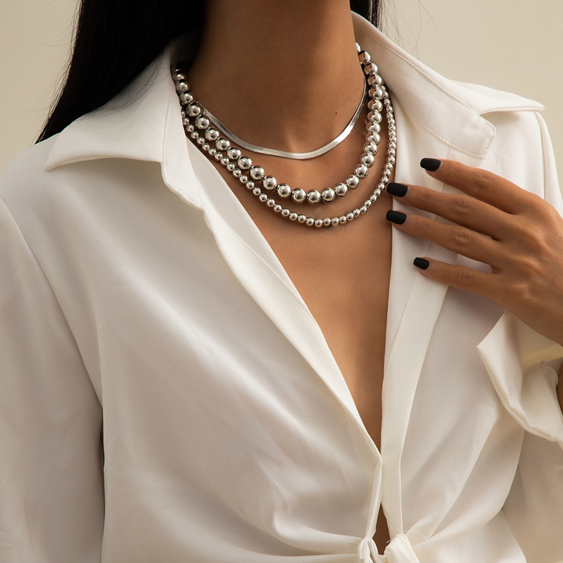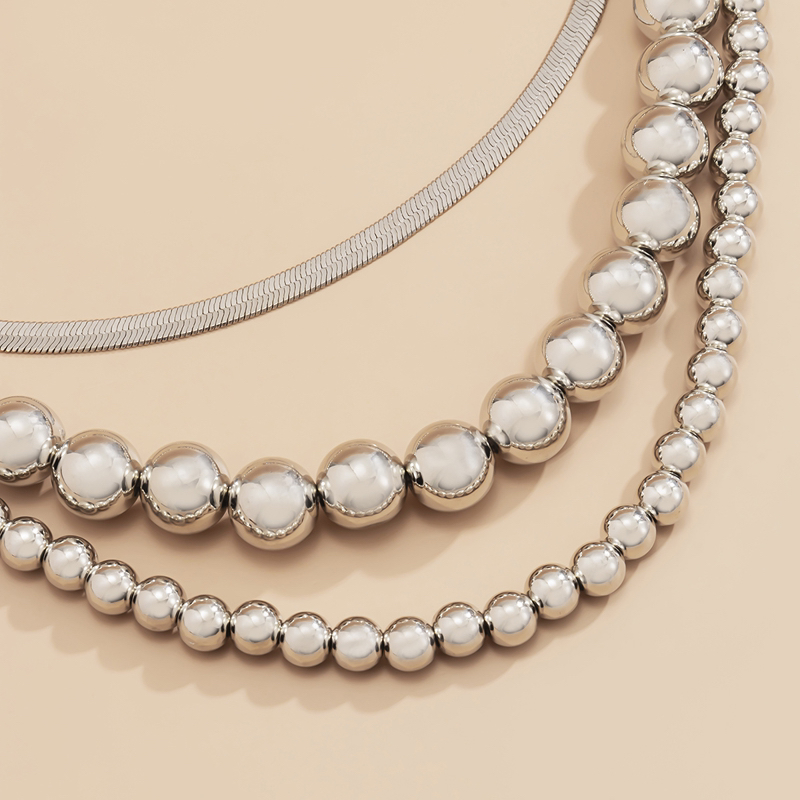 ccb beads chain like flat snake three-piece necklace combination european and american cold style everyday joker shape clavicle chain 1 中文版