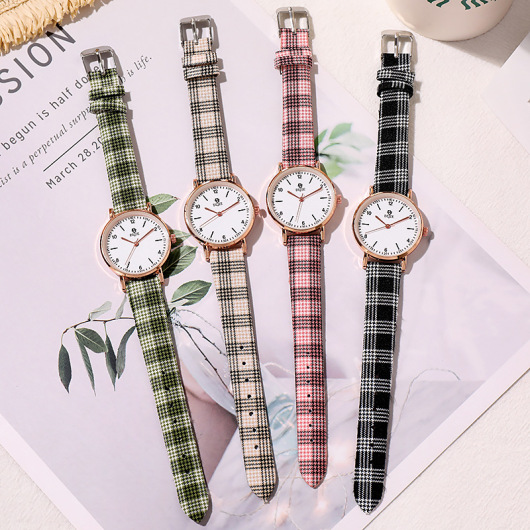 Small vintage artistic girl Plaid watch