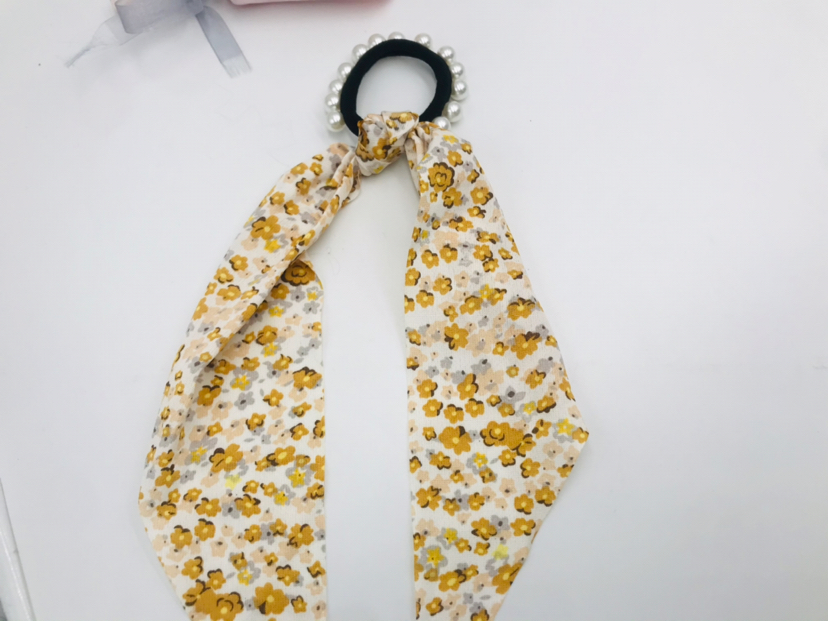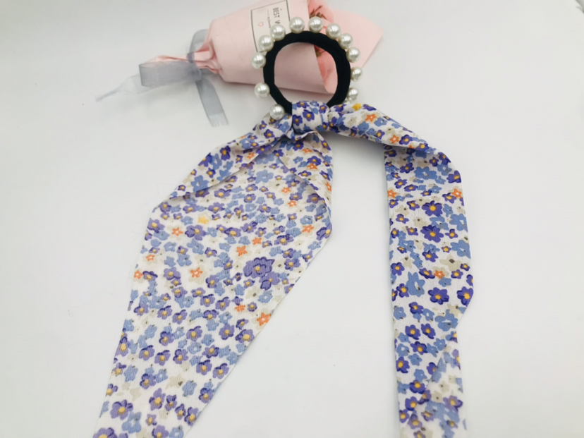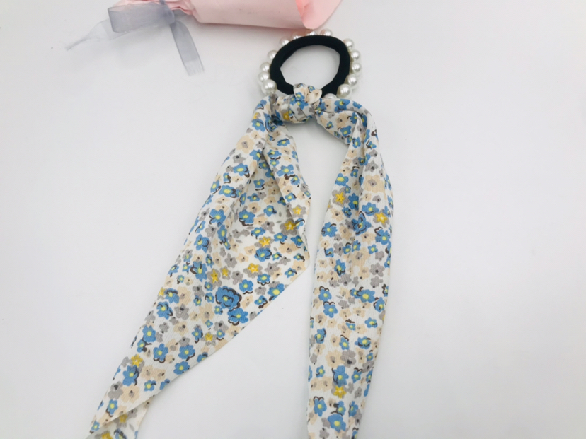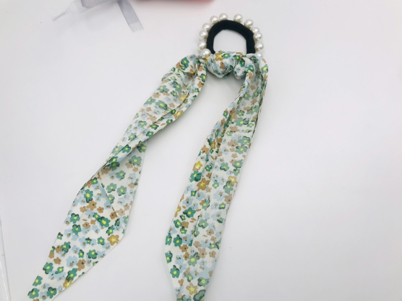 floral fabric long streamer pearl hair rope hair ring fashion popular hair rope 中文版