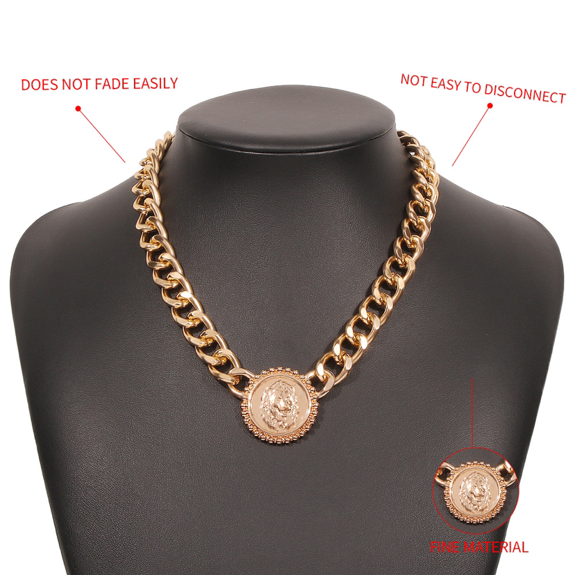 n4279 europe and america cross border single layer necklace female alloy lion's head simple necklace high profile and generous geometric necklace 中文版