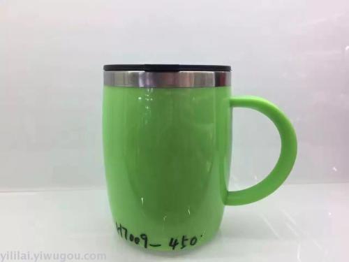 cup double-layer stainless steel water cup office cup vehicle-borne cup steel inside & plastic outside cup 450ml 中文版