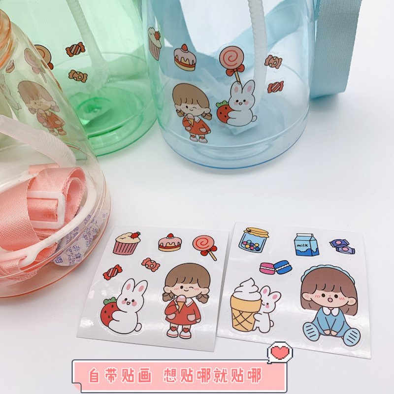 internet celebrity big belly cup children's straw cup large capacity kettle summer strap-1200ml 中文版