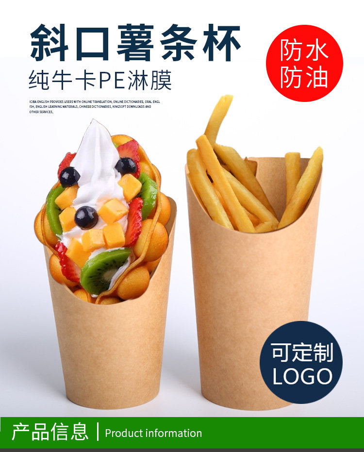 disposable fried chicken snack box kraft paper fried food takeaway packing box french fries popcorn oil-proof snack bag