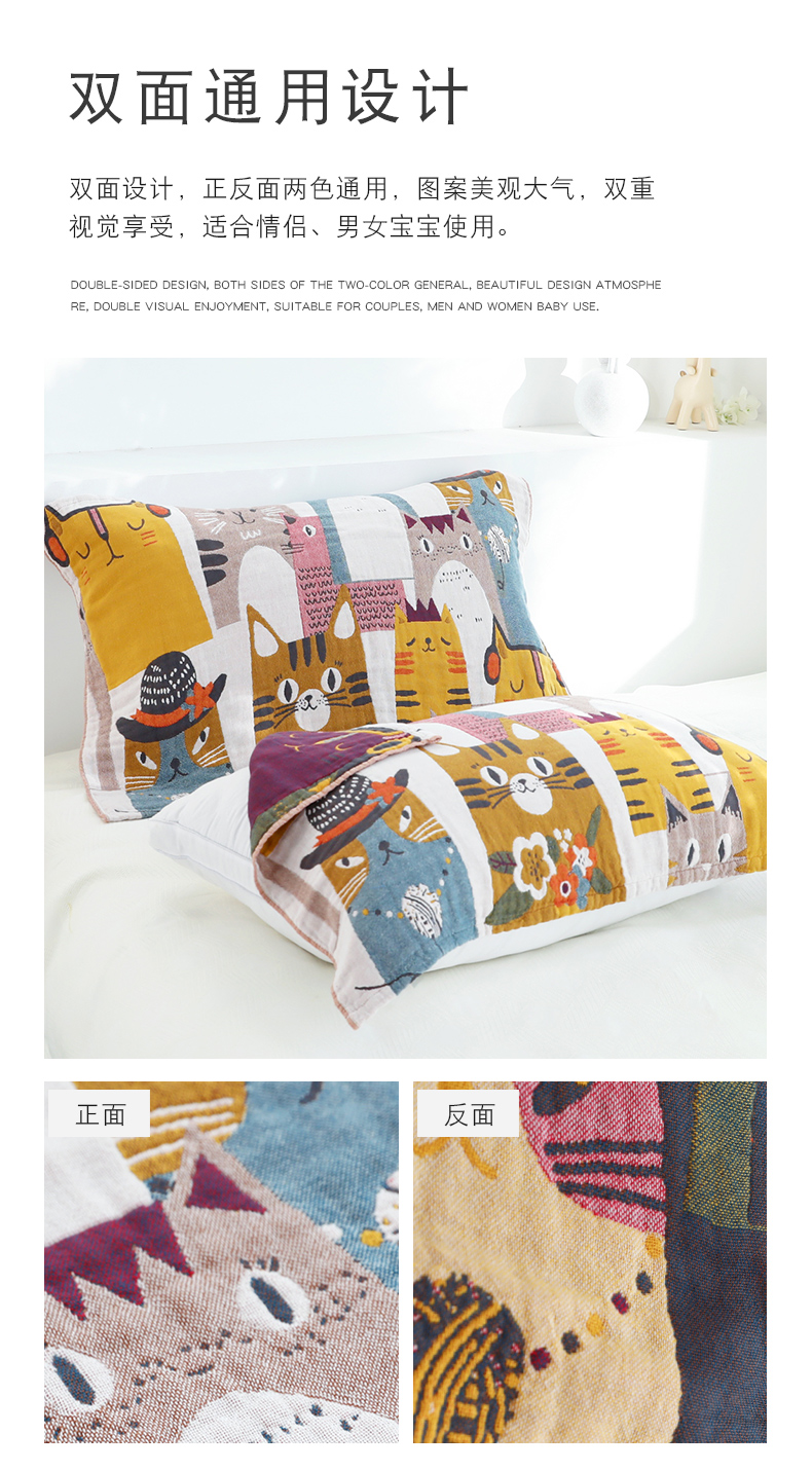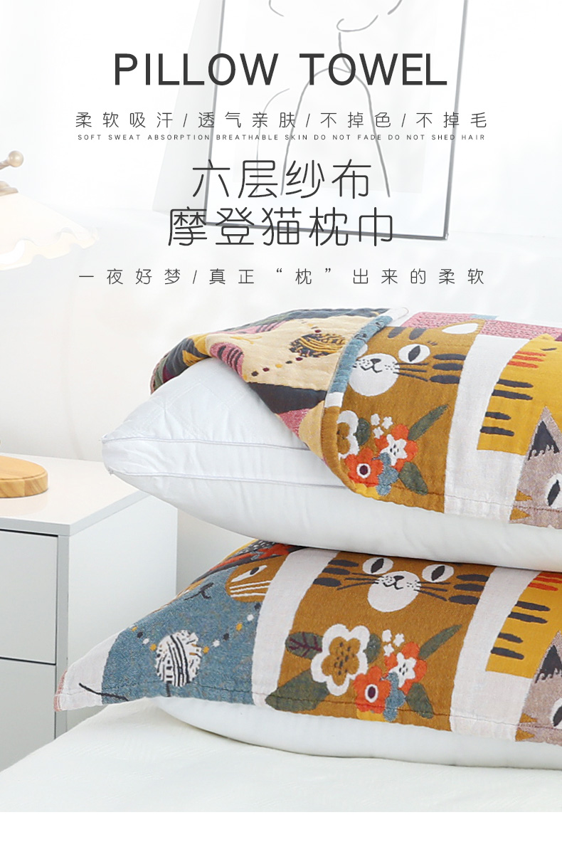 Yiwu Good Goods Pillow Case Pure Cotton One-Pair Package Japanese Single Gauze Adult Cute Simple Nordic Non-Slip Cover Towel 中文版