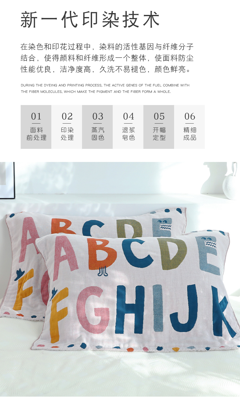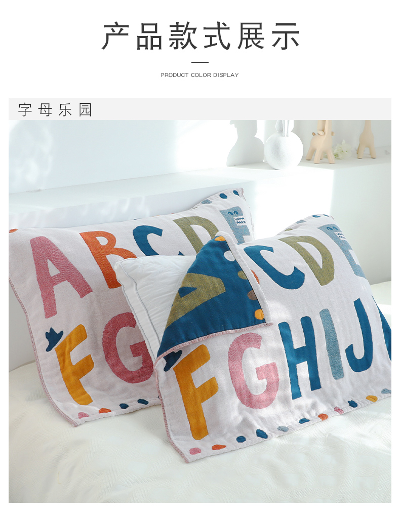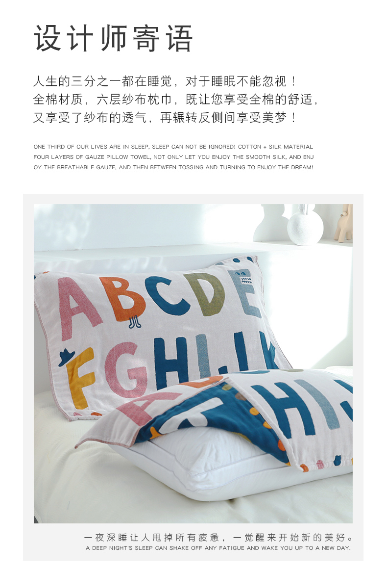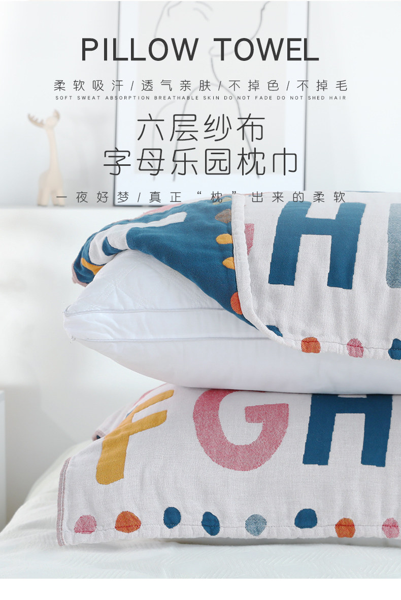 Yiwu Good Goods Pillow Case Pure Cotton One-Pair Package Single Cute Cover Towel Non-Slip Non-Shedding Full Gauze Letter Pillow Case 中文版