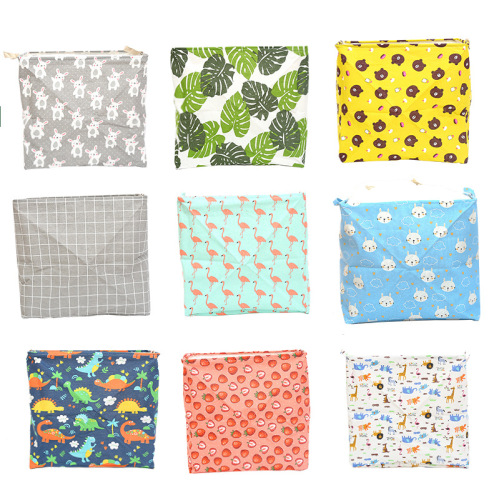 Factory Wholesale Cotton and Linen Storage Basket Fabric Folding Drawstring Laundry Basket Buggy Bag Toys Sundries Storage Bucket Spot 中文版