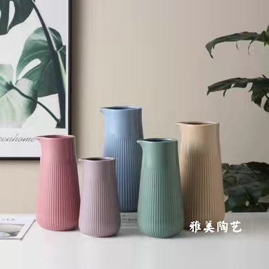 modern minimalist morandi candy pink purple blue green yellow red ceramic flower bottle pot decoration square round three-piece set