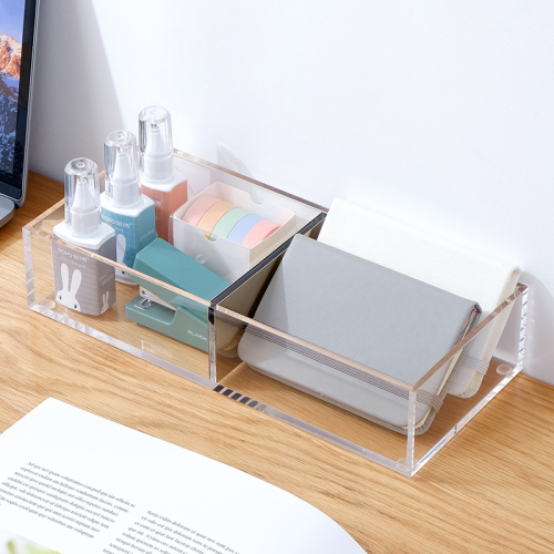Acrylic office supplies with two-tier desk top storage