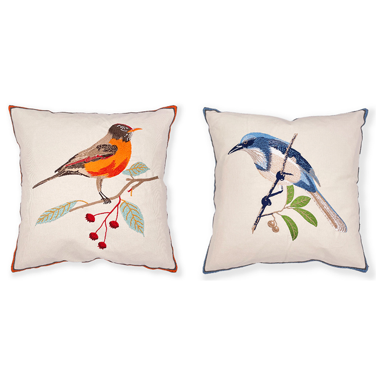 Chinese Style Embroidery Pillow Country Fresh Sofa Cushion Cover Flower-Bird Pattern Car Cushion Backrest Waist Pad 中文版