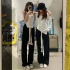 Drawstring Sports Pants Female Summer High Waist Loose Straight Spring and Autumn Leisure Lazy Walking Black Drape Mop Wide Leg Pants 中文版