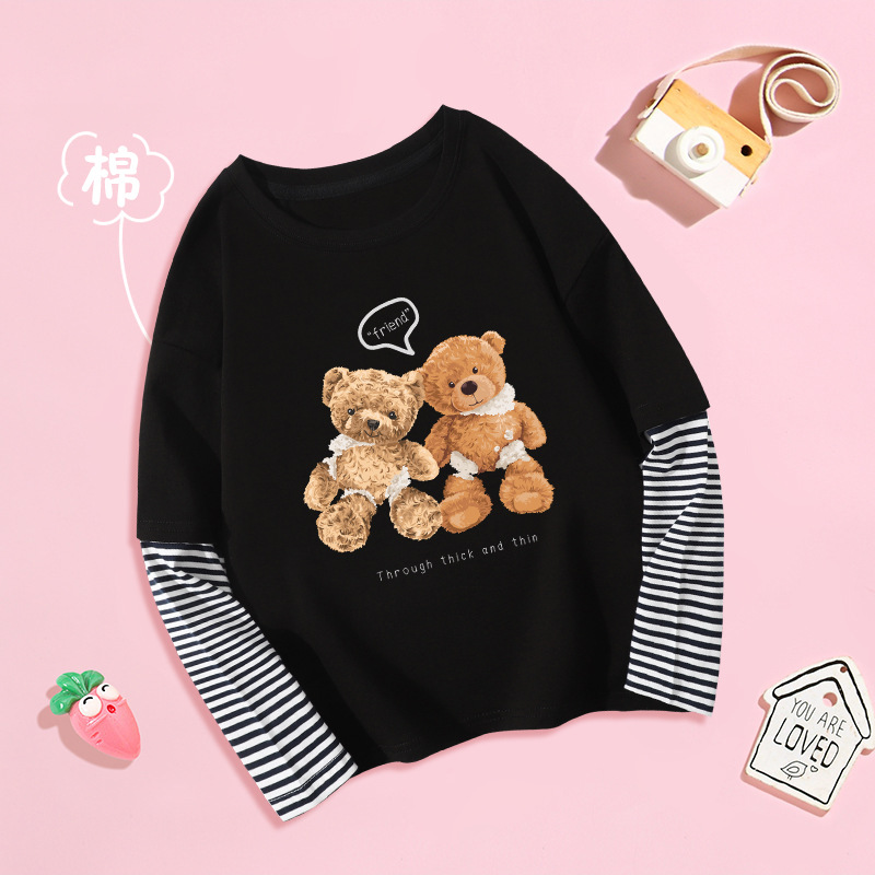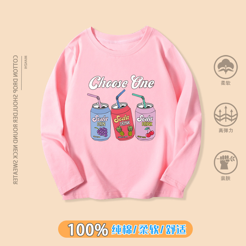 Girls' Long-Sleeved T-shirt 2021 New Trendy Korean Style Autumn Middle and Big Children Autumn Top Children's Clothing Cotton Children 中文版