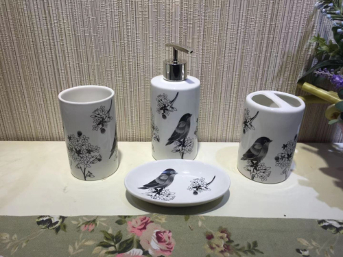 simple style printing bathroom set sannitizer replacement bottle soap dish 中文版