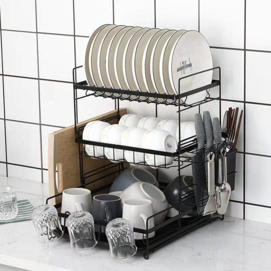 Multifunctional Three-Layer Bowl Rack Black